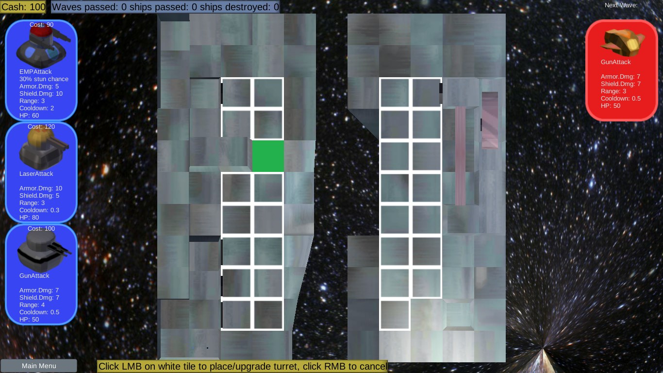 Tower DefenseUpgradable Turrets (3 types)3 different spaceships with different stats!