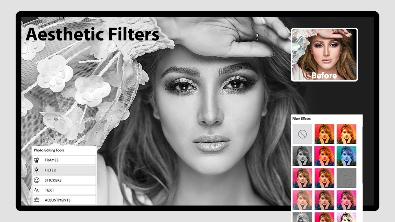 You can either edit your photos with frames and other photo effects, by selecting photos from mobile gallery or you can use to click photo directly along with the frames.