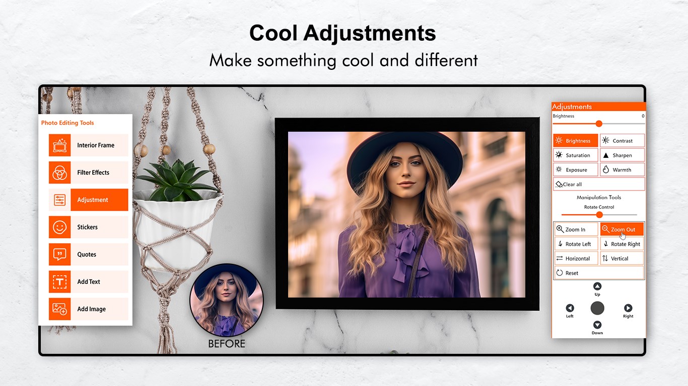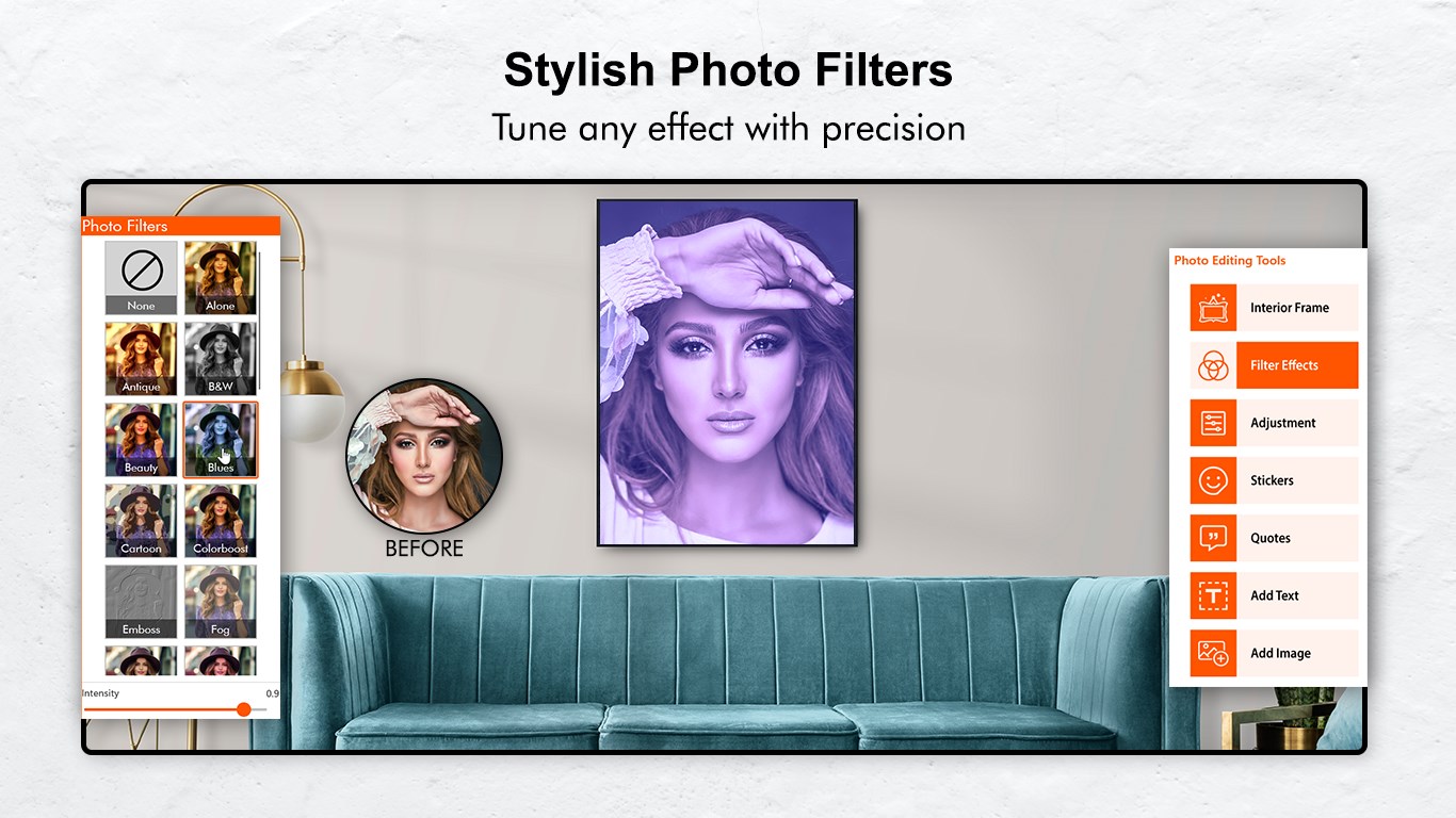 With Interior photo frames you can add cool effects and frames to your favorite photos inside home, any image will be perfect!