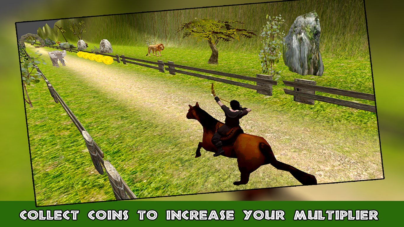 Jungle Horse Run will provide you run games experience while having an adventure horse riding journey in a jungle with Arrow & Bow as simultaneously you are playing role of Archer master who hunt down the wild animals coming on his way with his archer successfully and heads forward. While having your adventurous journey in Jungle while riding the horse you have to be carefully escape from deadly animals like lions, elephants, forest dogs etc., as if you miss to shoot or kill them, they might hunt you down in jungle. The game is with amazing 3D graphics, realistic & smooth game play, and cool 3D animations with full of challenges yet easy to play.