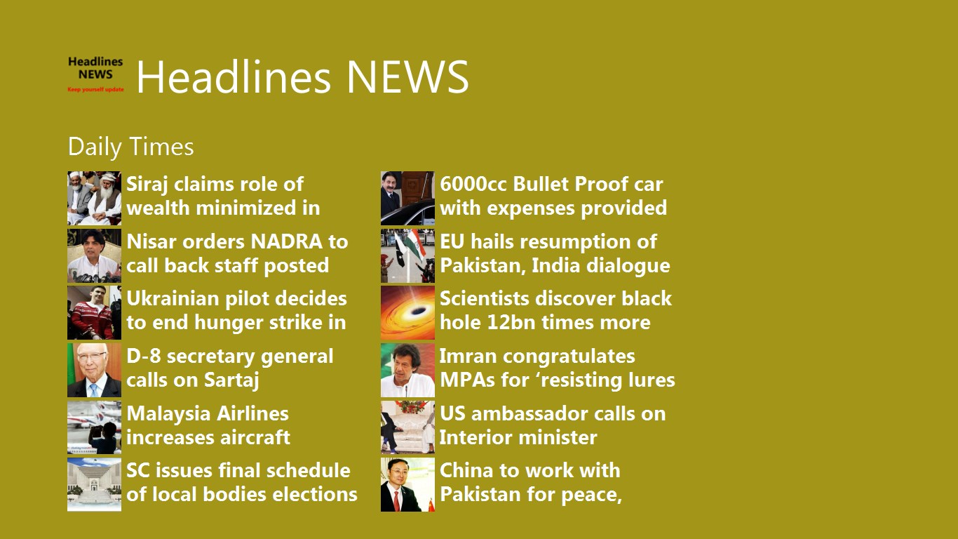 Headlines NEWS provides headlines from some of the best NEWS portal of Pakistan so that you can get latest NEWS in one app.