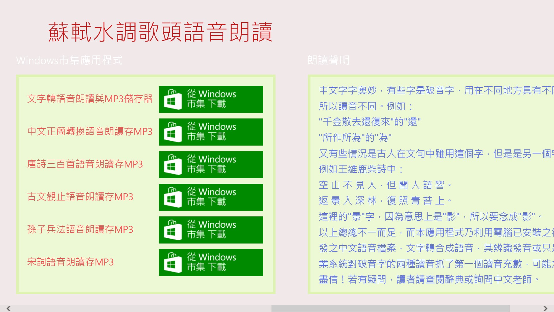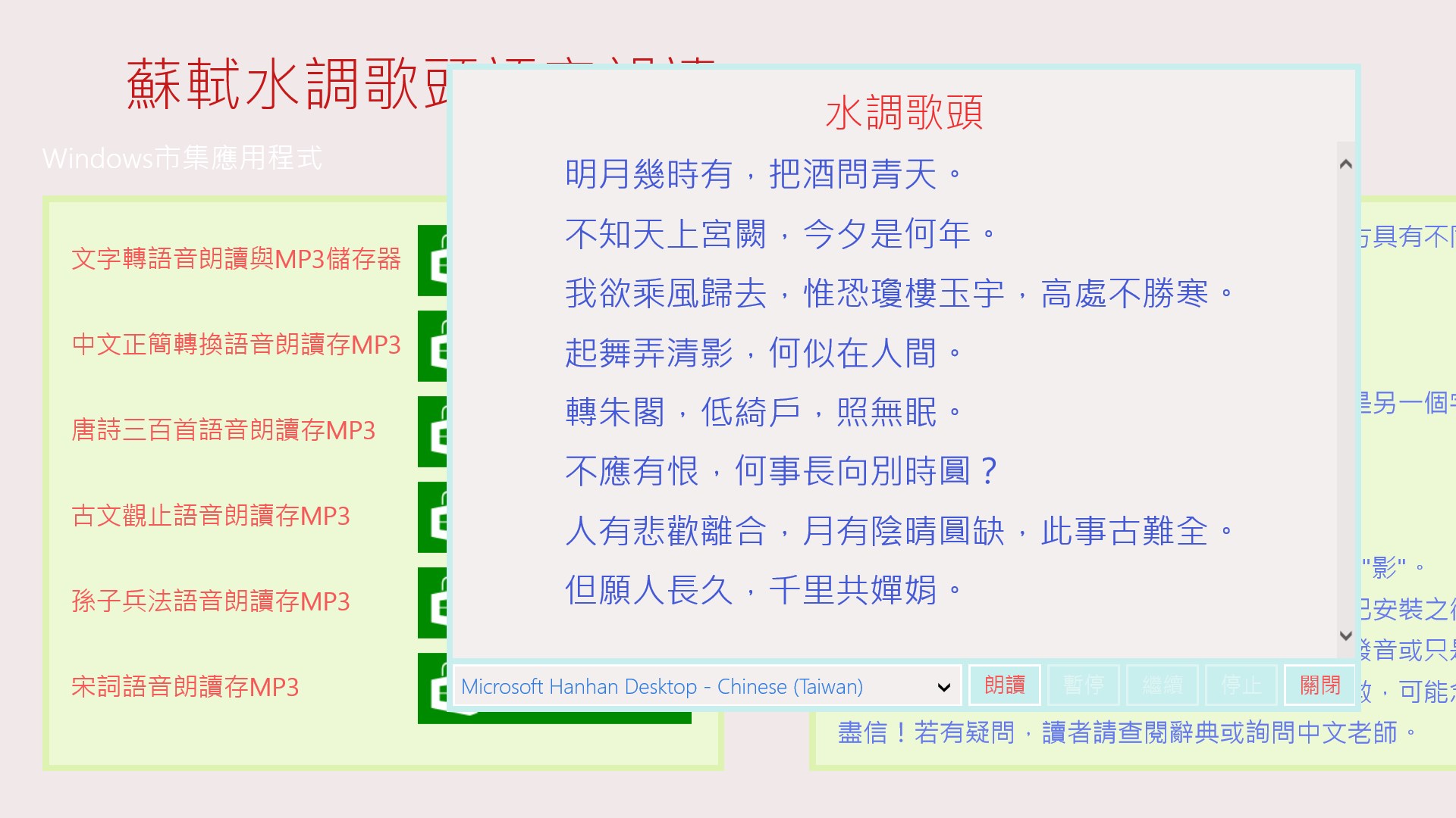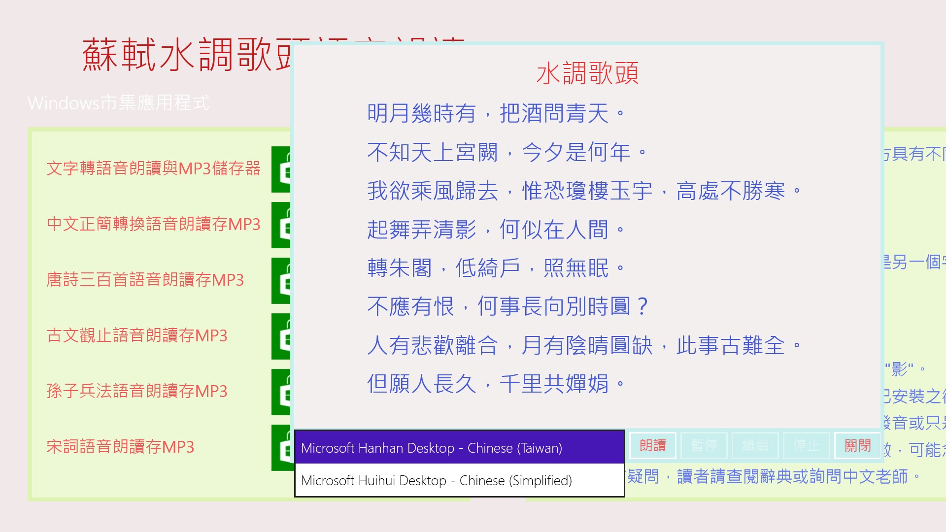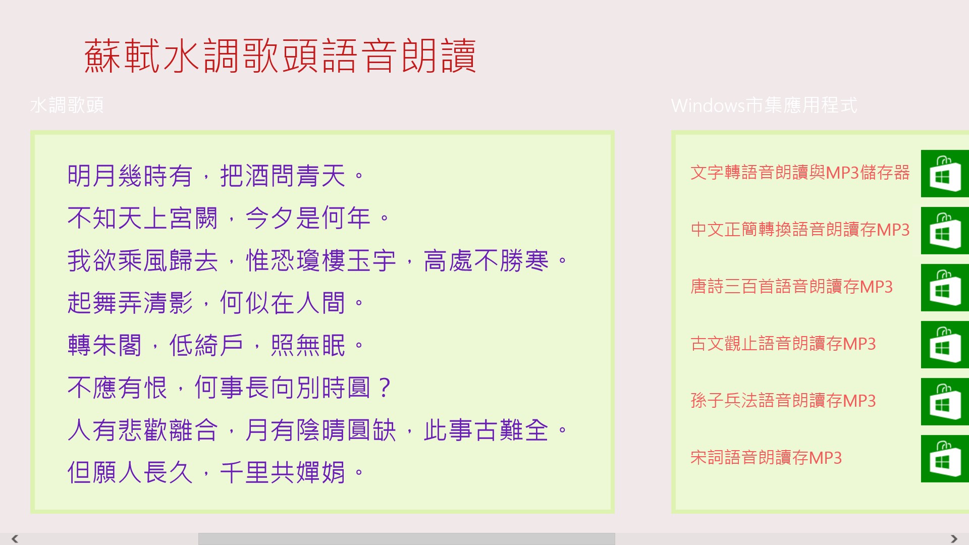 How to download and Install 蘇軾水調歌頭語音朗讀 on Windows PC via the NWindows Store