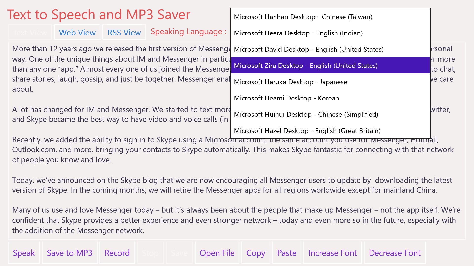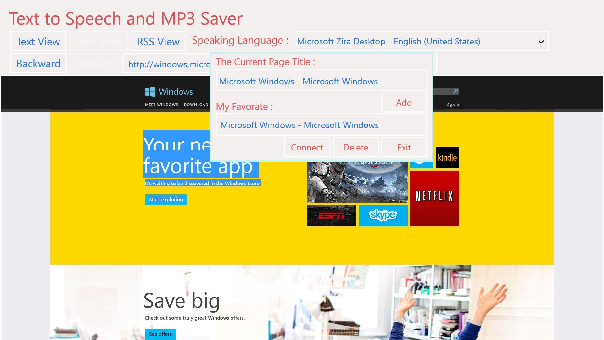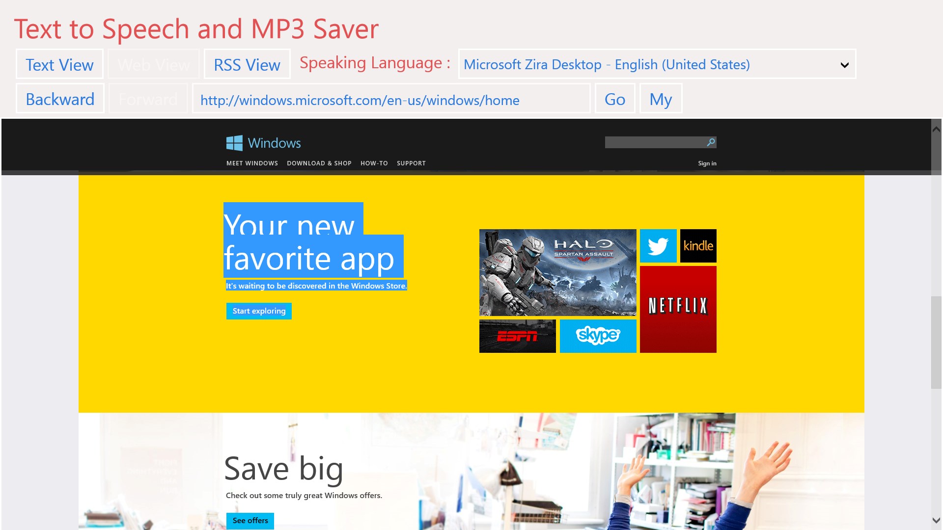 How to download and Install Text to Speech and MP3 Saver on Windows PC via the NWindows Store
