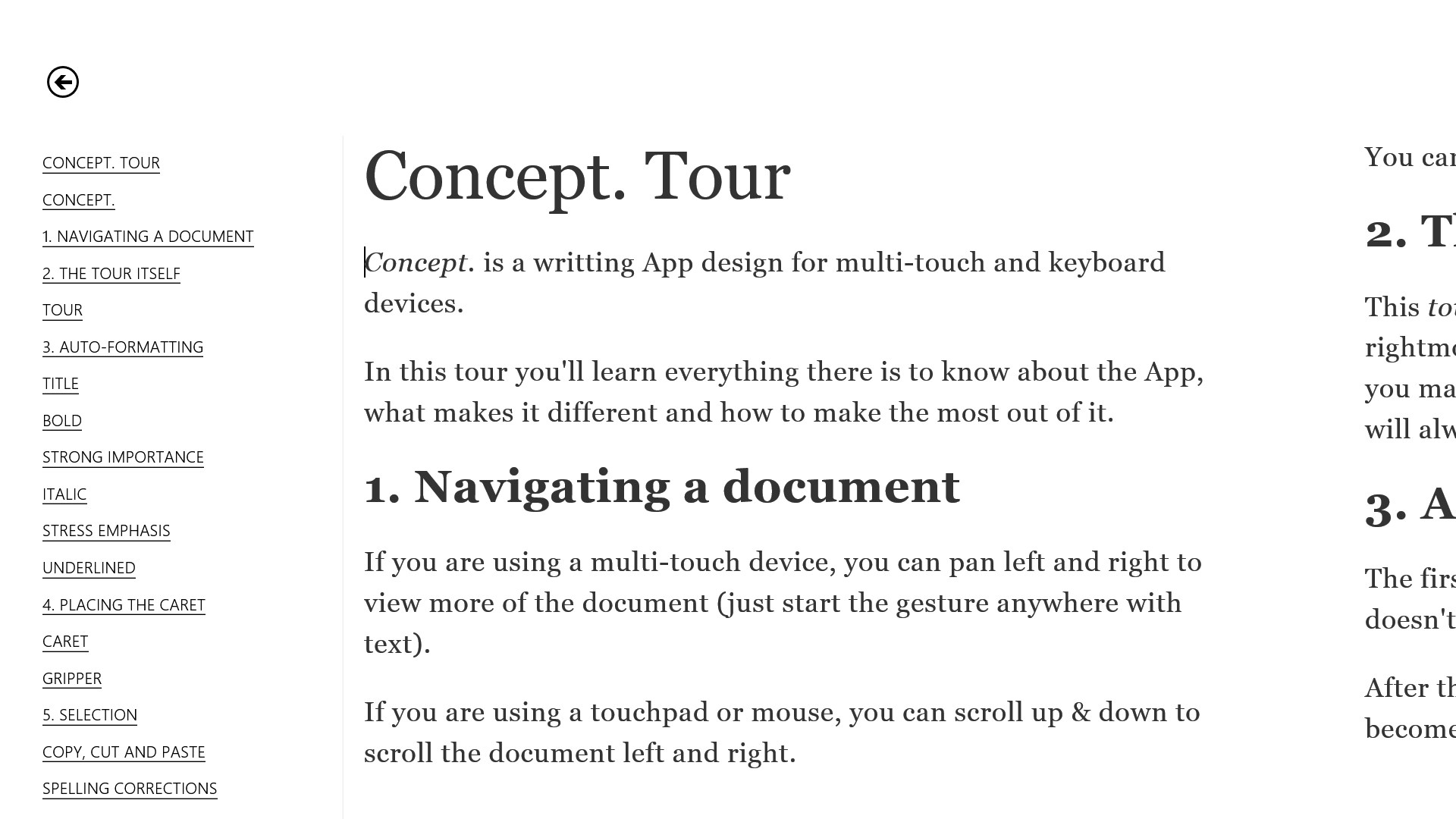 A lightweight writing app (word processor) for multitouch and keyboard devices.