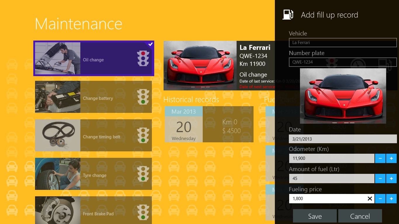 Easily record and schedule maintenanceEasy access to history of all maintenance made to a vehicle and the cost associated with the maintenance or repairEach maintenance task is 100% customizable per vehicleEasy track of fuel consumption and costs associated with rechargingIncreases the life and resale value of your vehicleReduces car downtime due to contingency