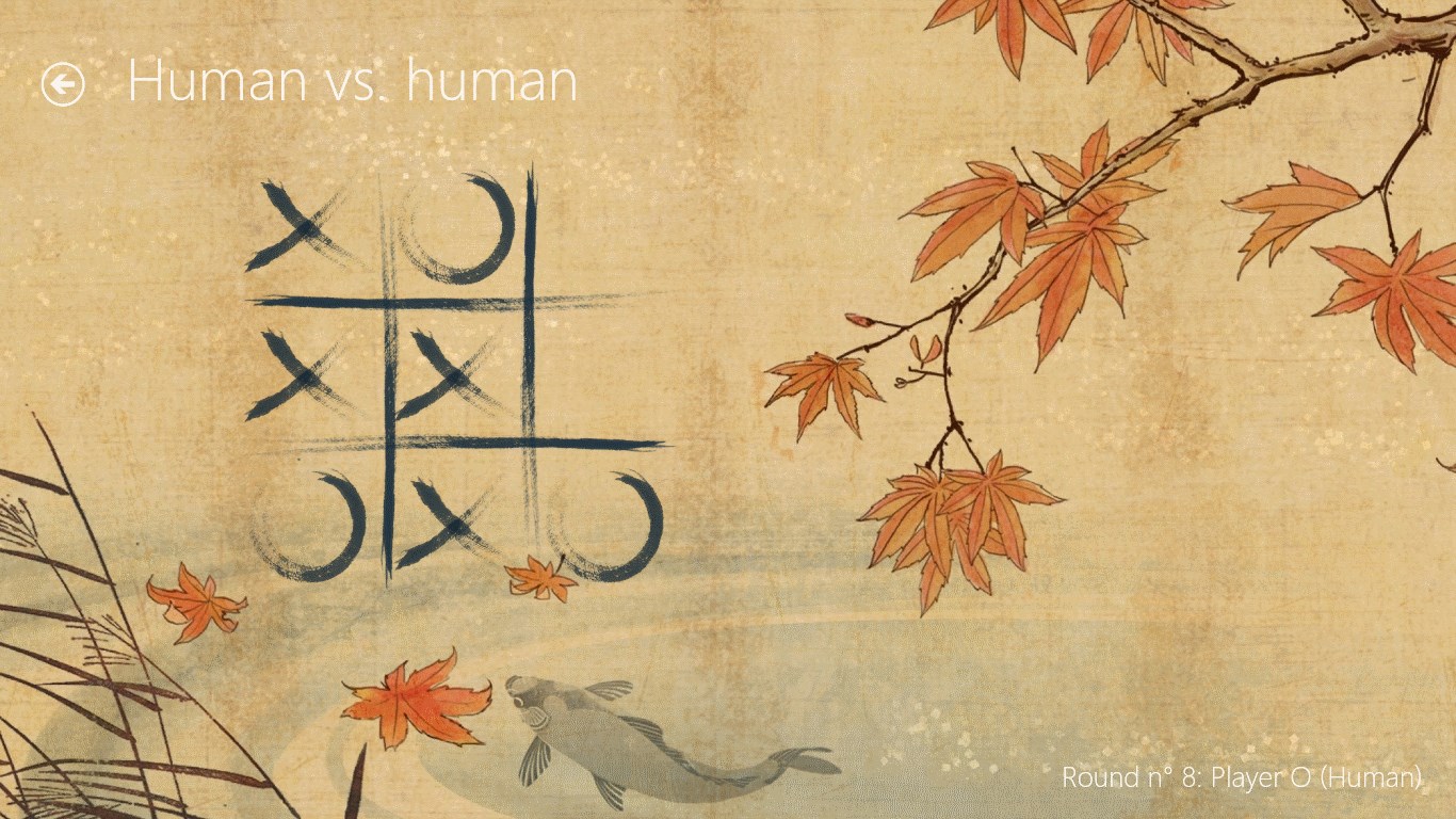 The classic Tic-tac-toe game you can play against a human player or a computer player. In the latter case you can choose from three levels of artificial intelligence: easy, average or unbeatable.
