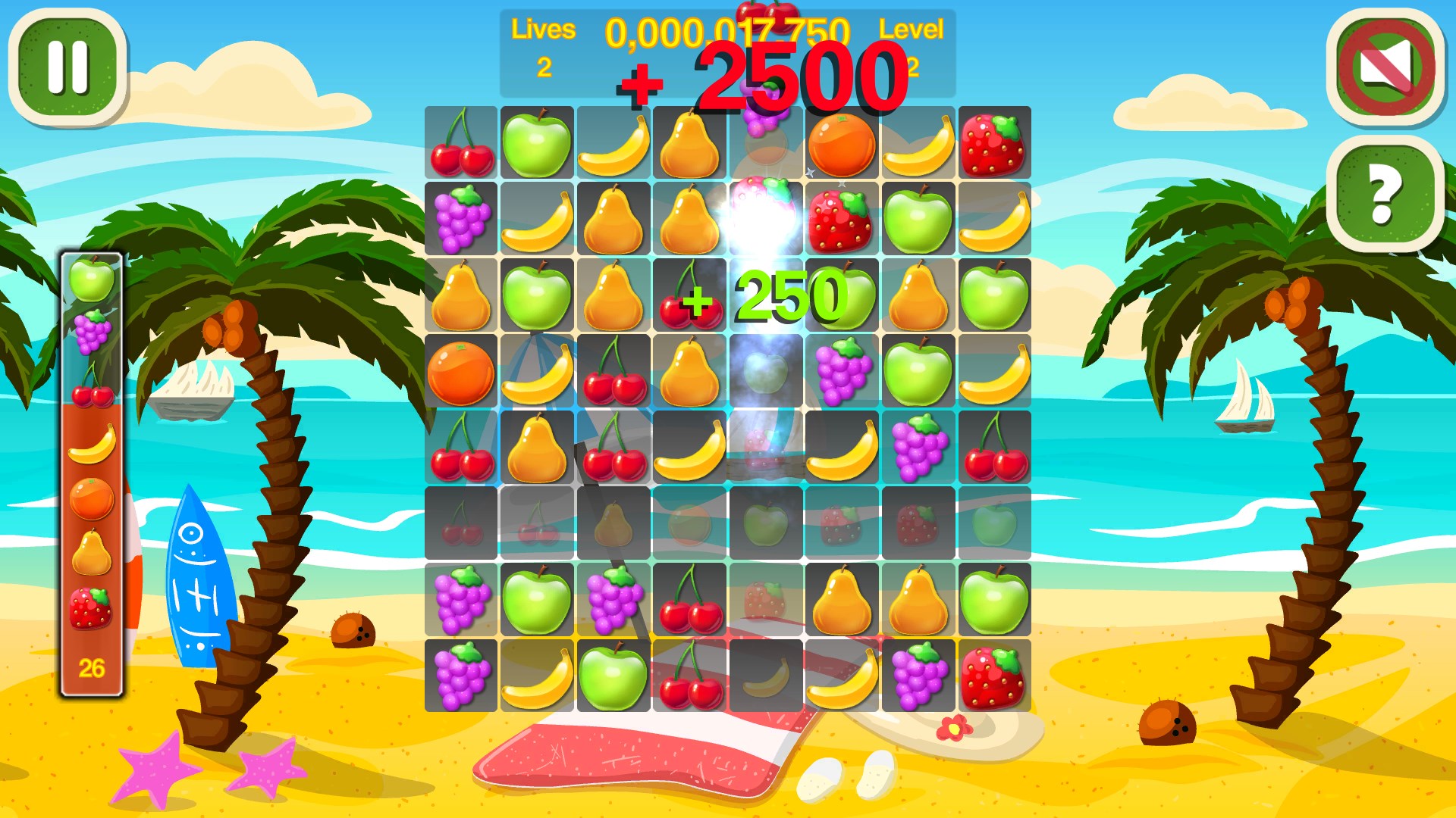 4 different game modes: Normal, Blitz, Relaxed and Time ChallengeIn Normal game mode: currently 35 varied and fun handcrafted levelsFast and fluid game playSpecial fruits and combosOnline leaderboards for every game mode