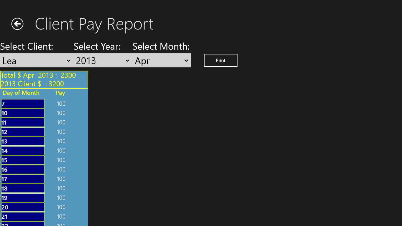 Tracks your income.Get on screen or print reports.