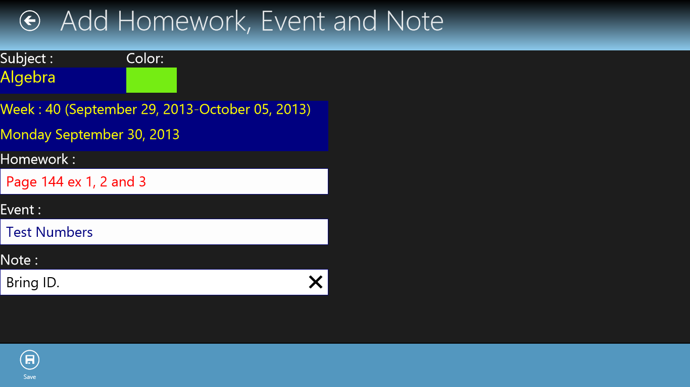 You can track your homework, events and notes.