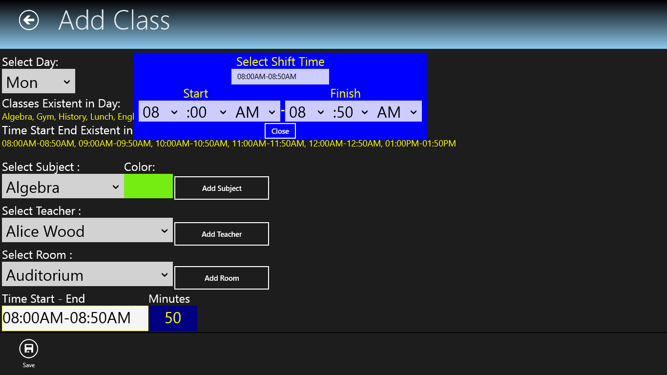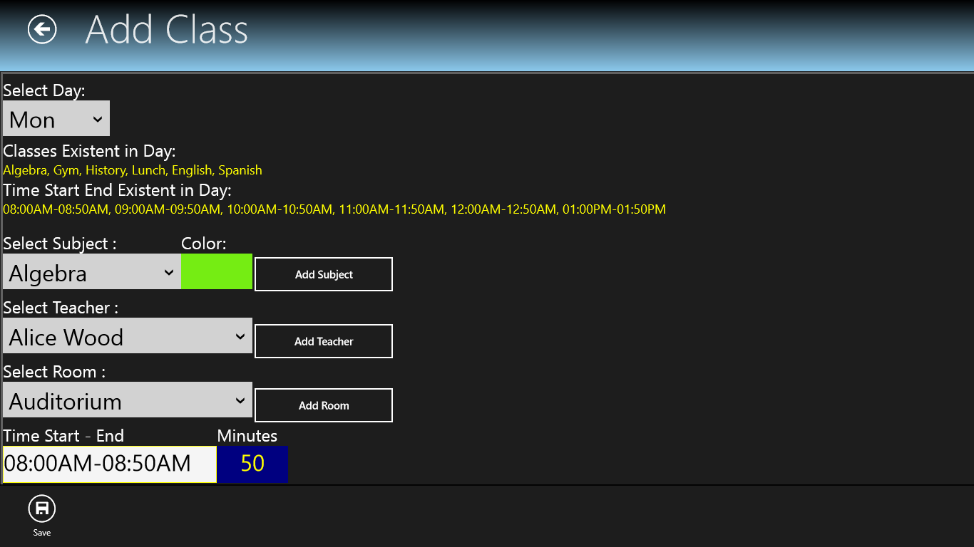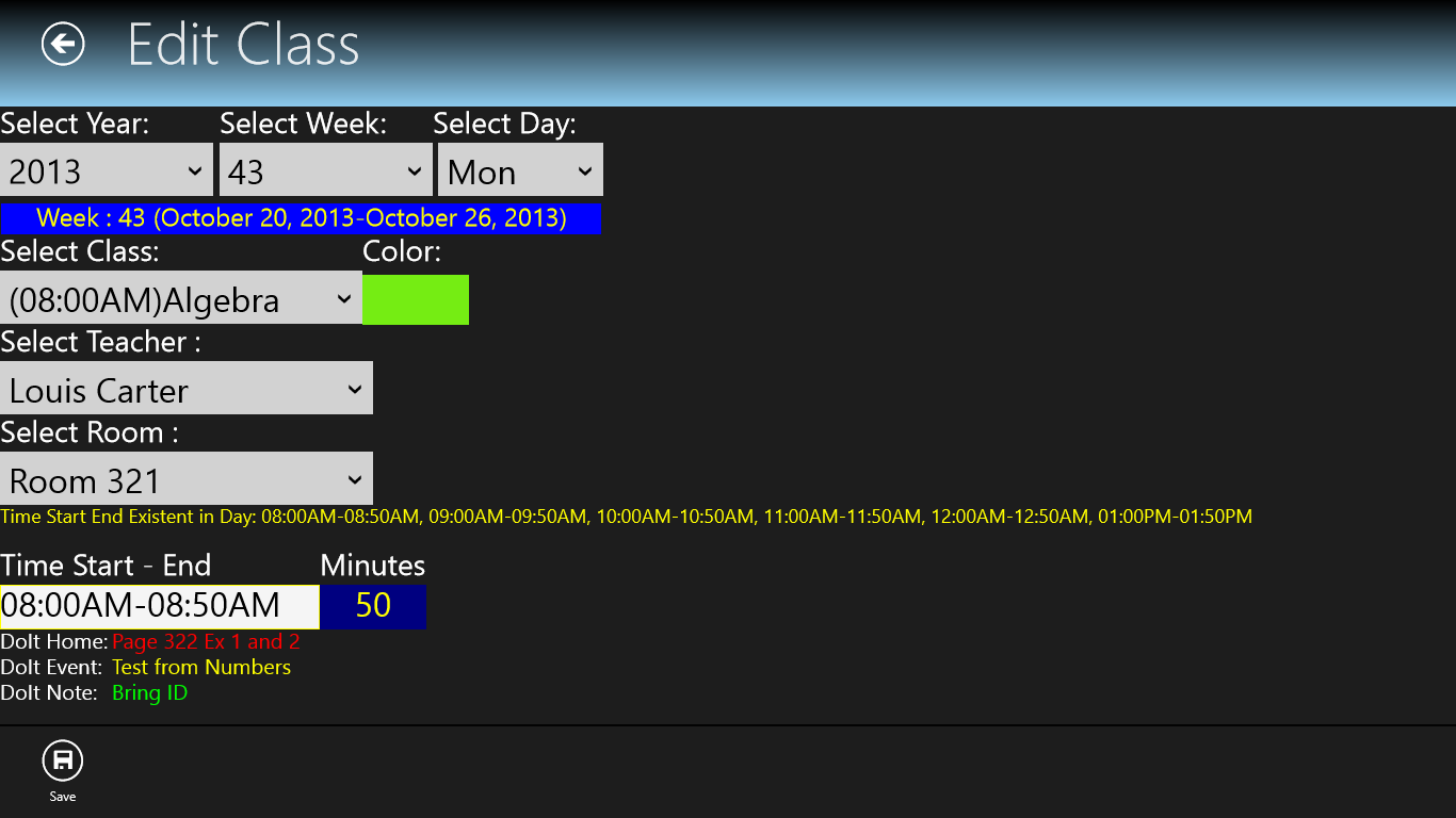 Class Time is a easy to use scheduler for any student. You can select 7 or 5 days scheduler.