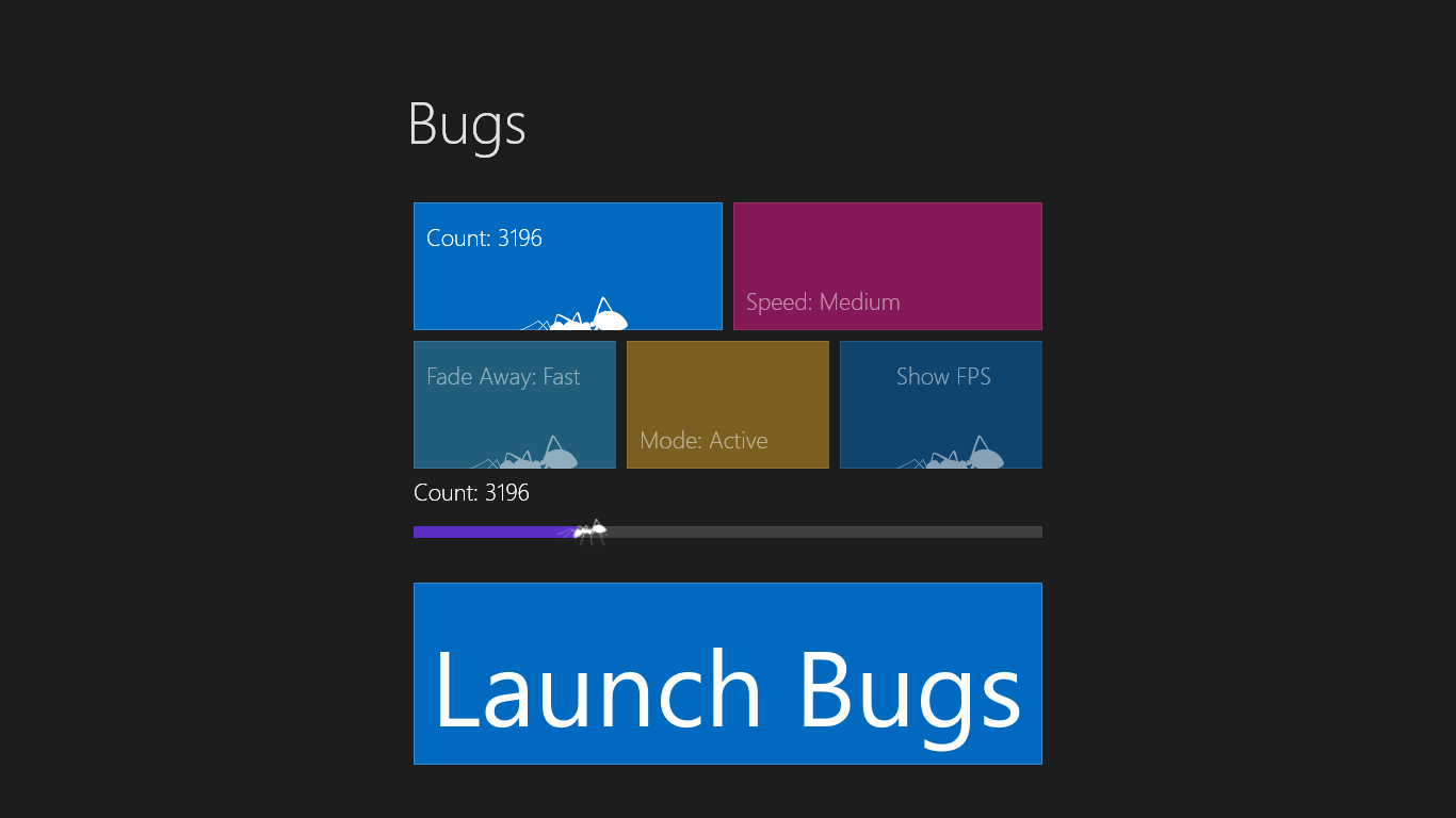 Falafel Bugs is a utility that allows you to gauge the graphic capability between various machines. Changing the settings will change the behavior for the bugs on display.