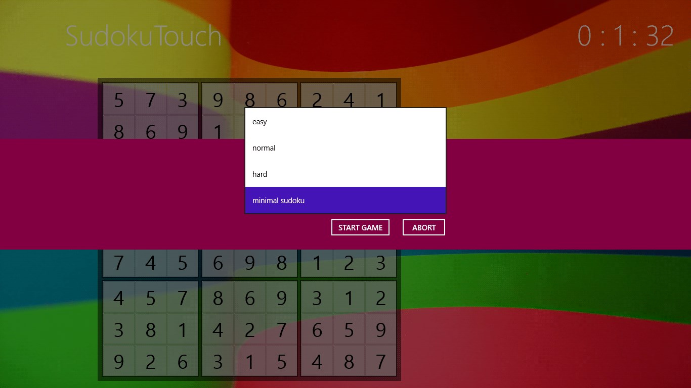 Only unique solution sudokus!nearly 50,000 minimal sudokustouch-optimizedautomatic fill-in helpshow wrong numberssaved games are shared accross your win8 devicesmultiple backgrounds