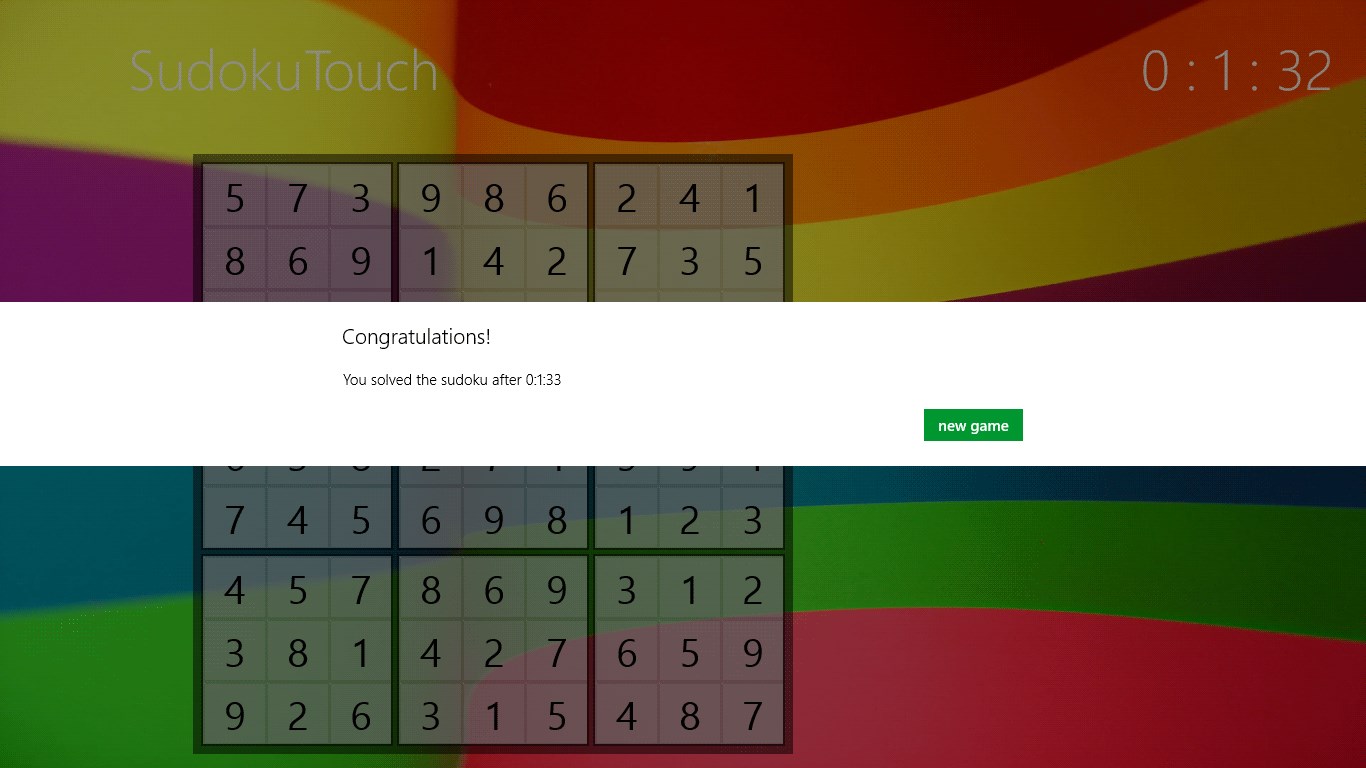 SudokuTouch is a simple touch-optimized sudoku game - but also well playable with mouse and keyboard.