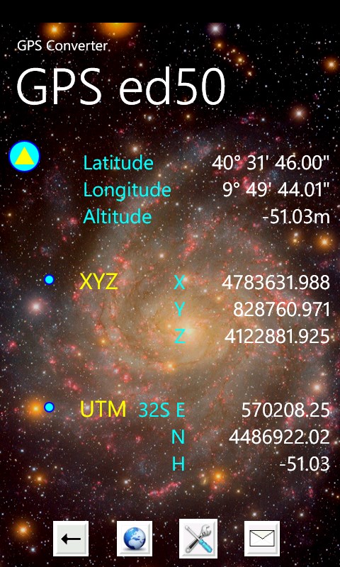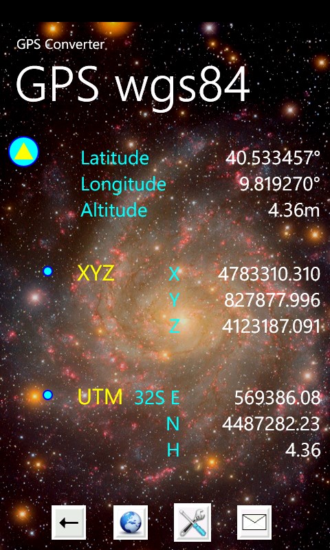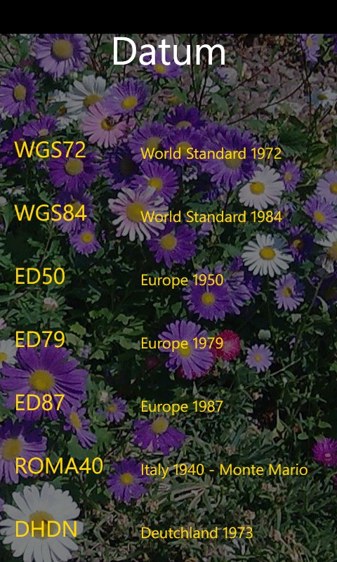 Fixed the GPS point the application performs the calculation of the data on Datum WGS84. You can then choose the Datum calculation to convert the coordinates to the datum chosen.