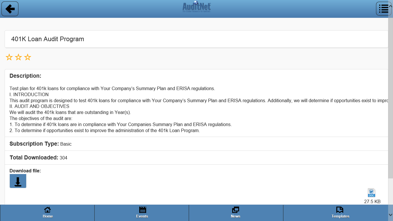 - Search by key word, objectives, program name, description, date added, ratings and comments for thousands of audit programs, templates and guides