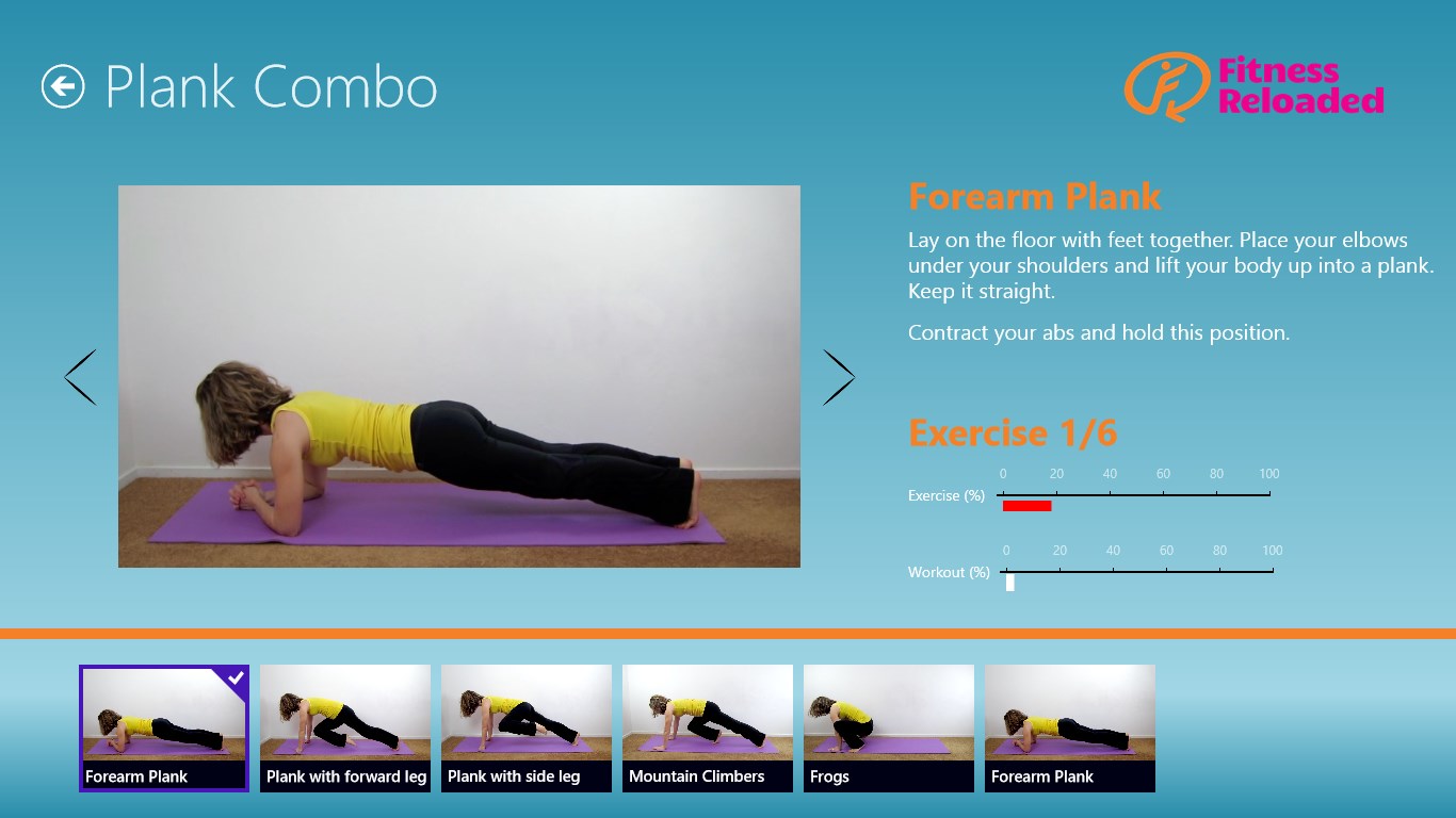 This app has a variety of abdominal exercise videos for all levels. It is good for everyone who wants to strengthen their abs. Exercises are grouped in workout routines: 4 min beginner & advanced, 8 min beginner & advanced, crunch combo, plank combo, and 16 min Mix.