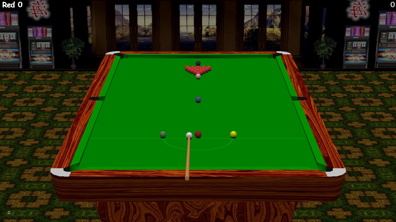 Four opponents with increasing skillTwo game types: Snooker and PracticeFull 3D viewingAim assistSave/resume gameTally sheet showing wins and losses