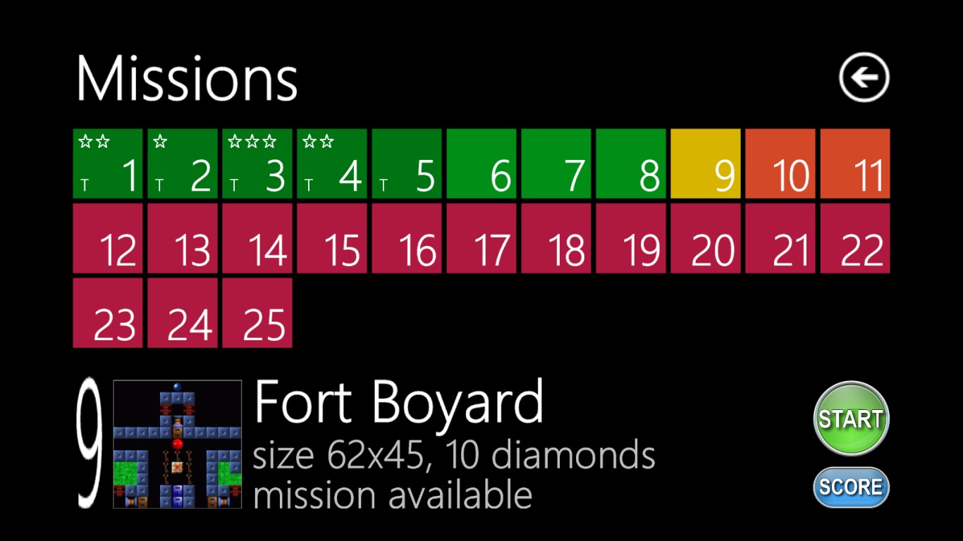 Mission game is a classic old style game in the new form. Agent (you) must collect the diamonds and go to the exit. But your work is complicated by falling boulders, insidious brutes and much other. You walk on the grass, which disappears behind you and the path which you choose fundamentally influences the course of the each mission.