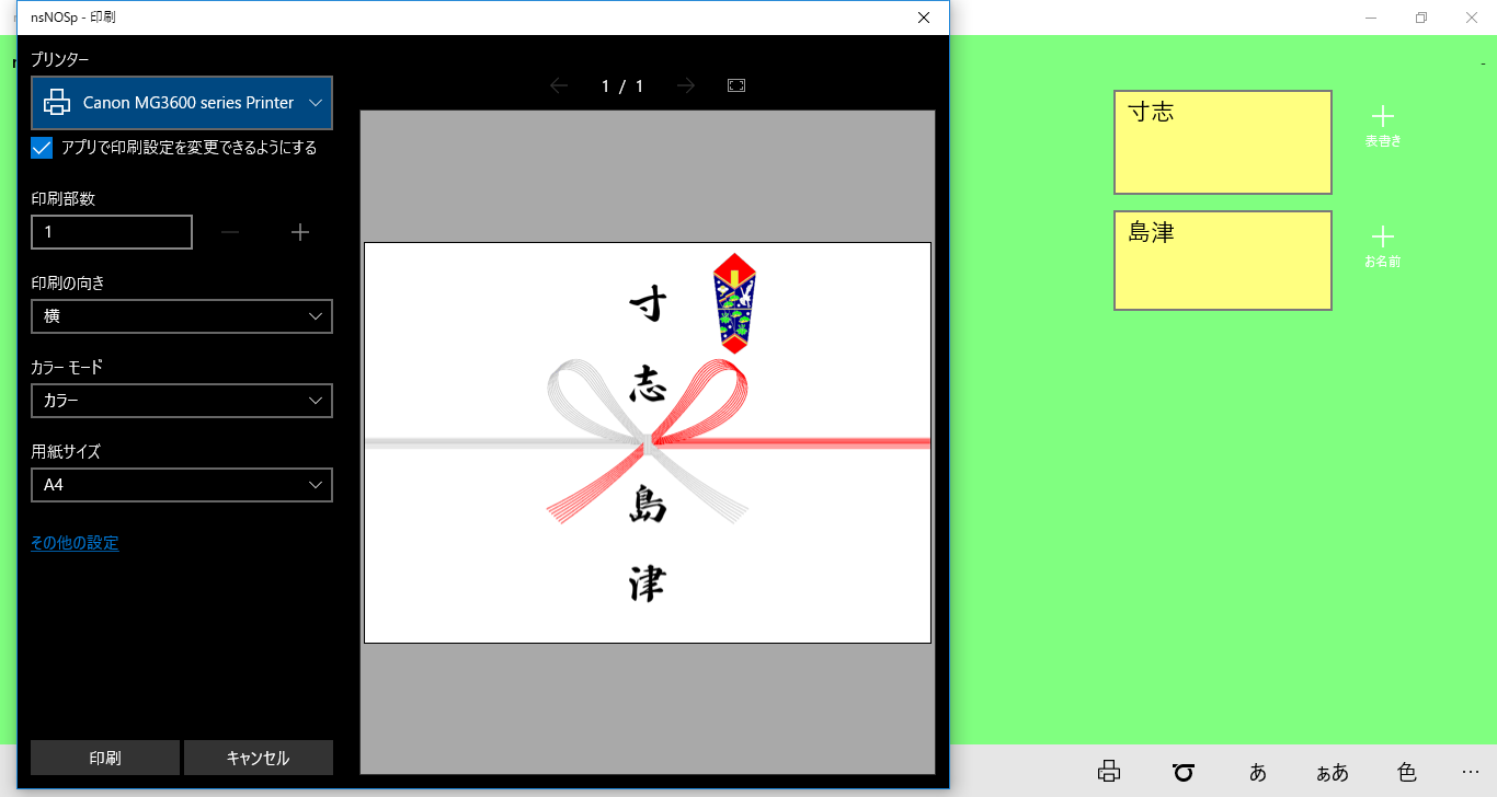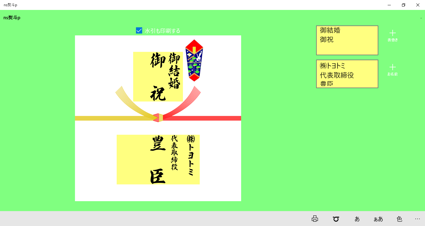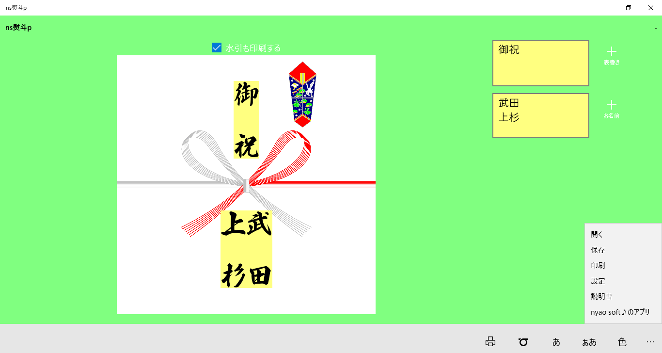 ns熨斗pは、熨斗紙を印刷するためのアプリです