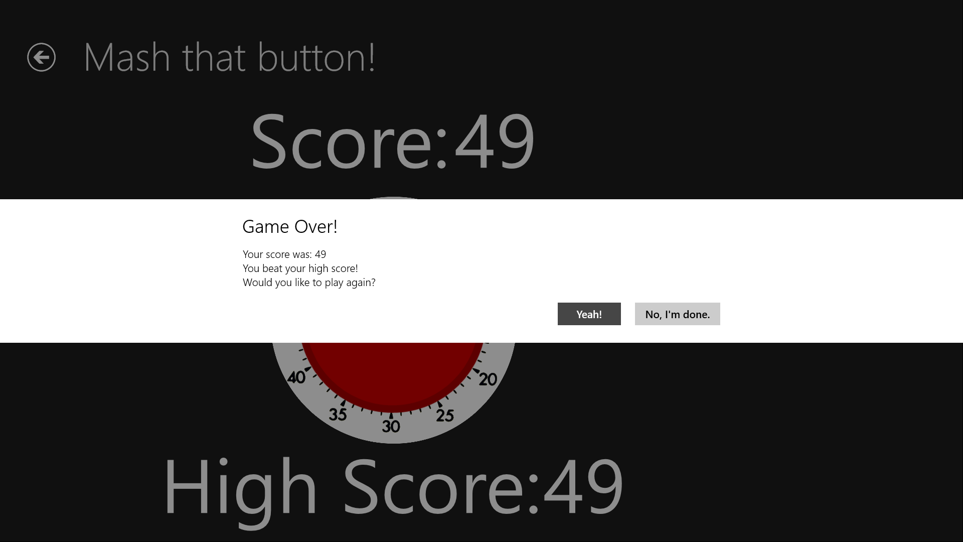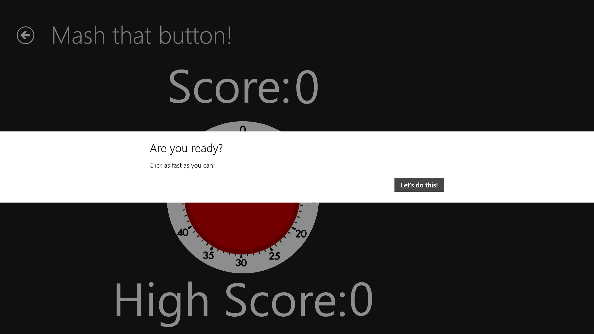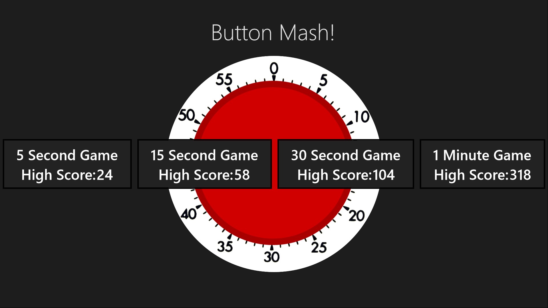 Exercise that trigger finger! Button Mash gives you a challenging and fun environment to see how fast you can mash that button! We've given you four different time periods to play in, testing both your burst speed and your endurance. Save your highscores to see your improvement!