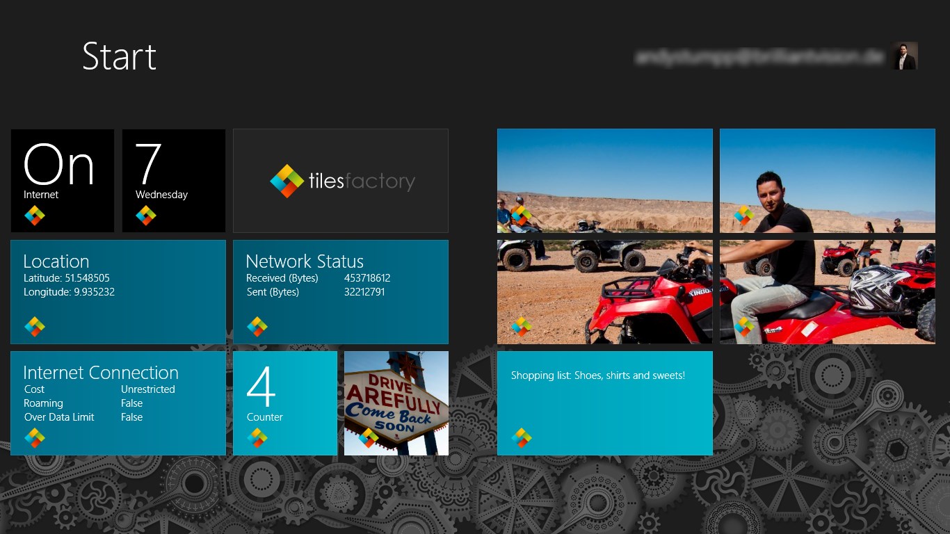 With Tiles Factory you can create your own customized live tiles! Choose from a variety of templates and add custom notes, links or pictures. You can even create multiple tiles consisting of one large image!