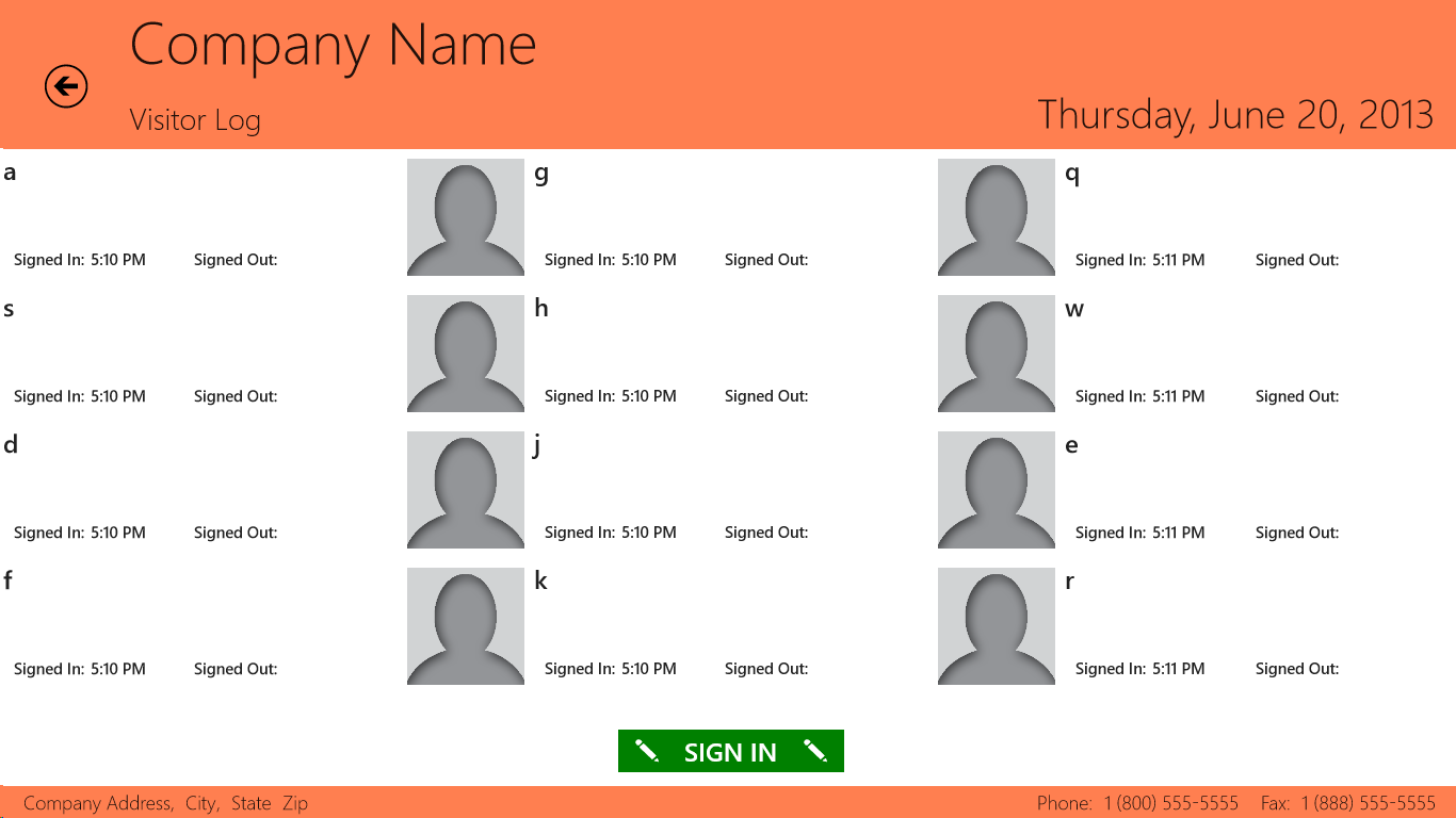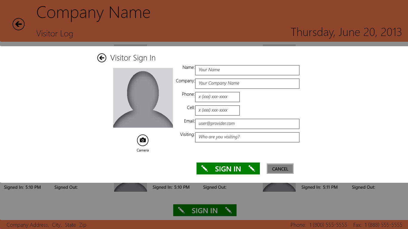 Customizable Company InformationEnable or Disable the Visitor Information you want to collectTake Visitor PicturePrint Daily Report