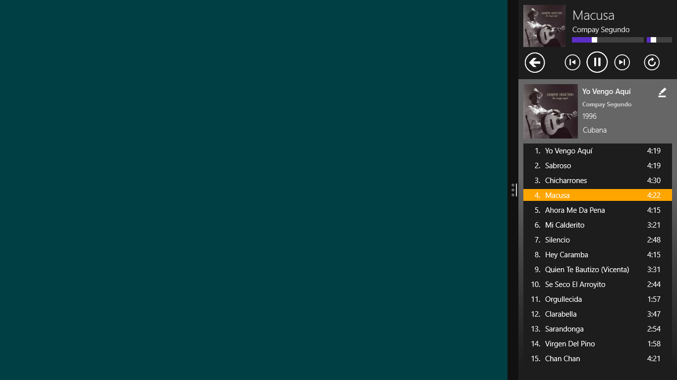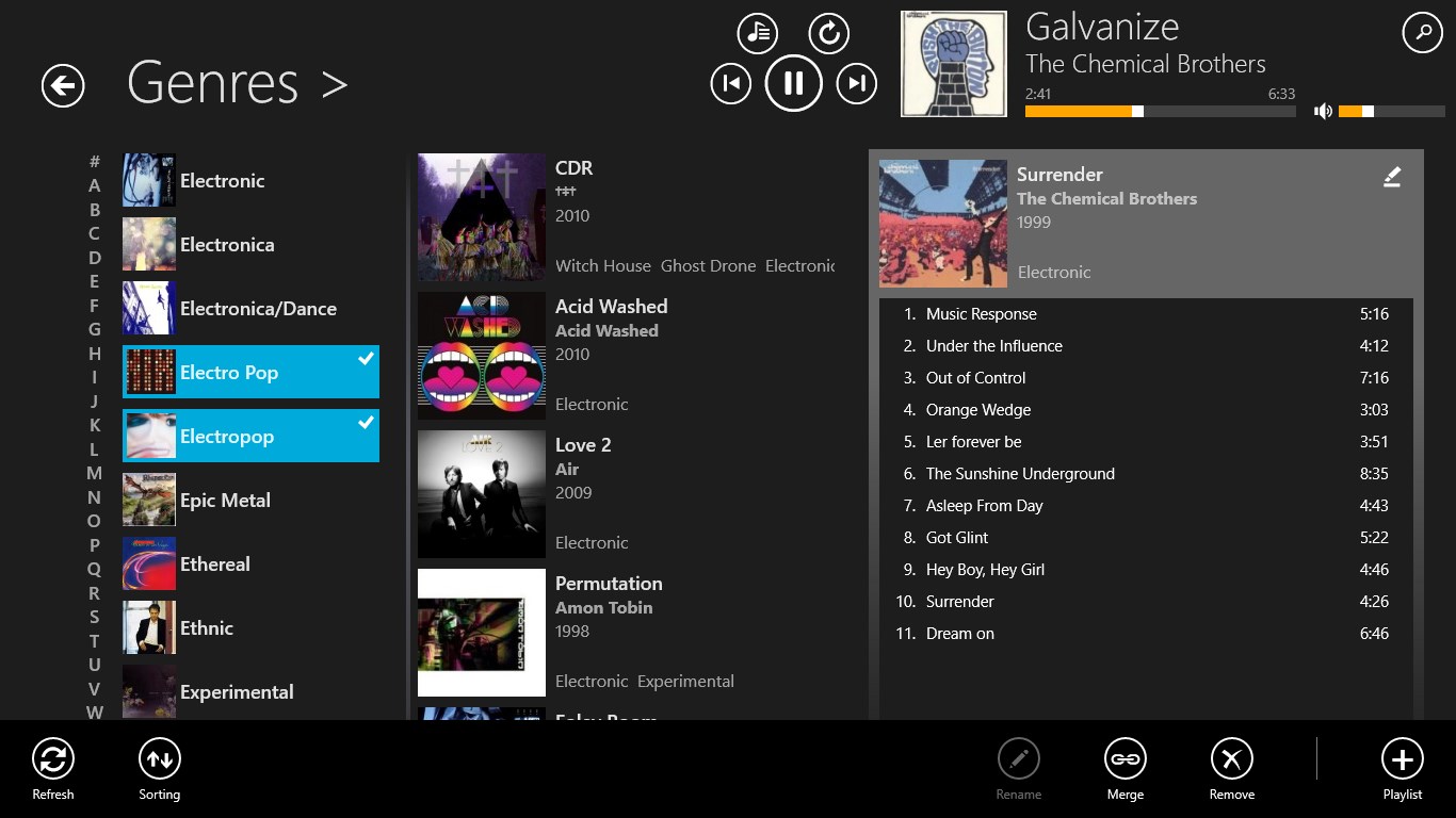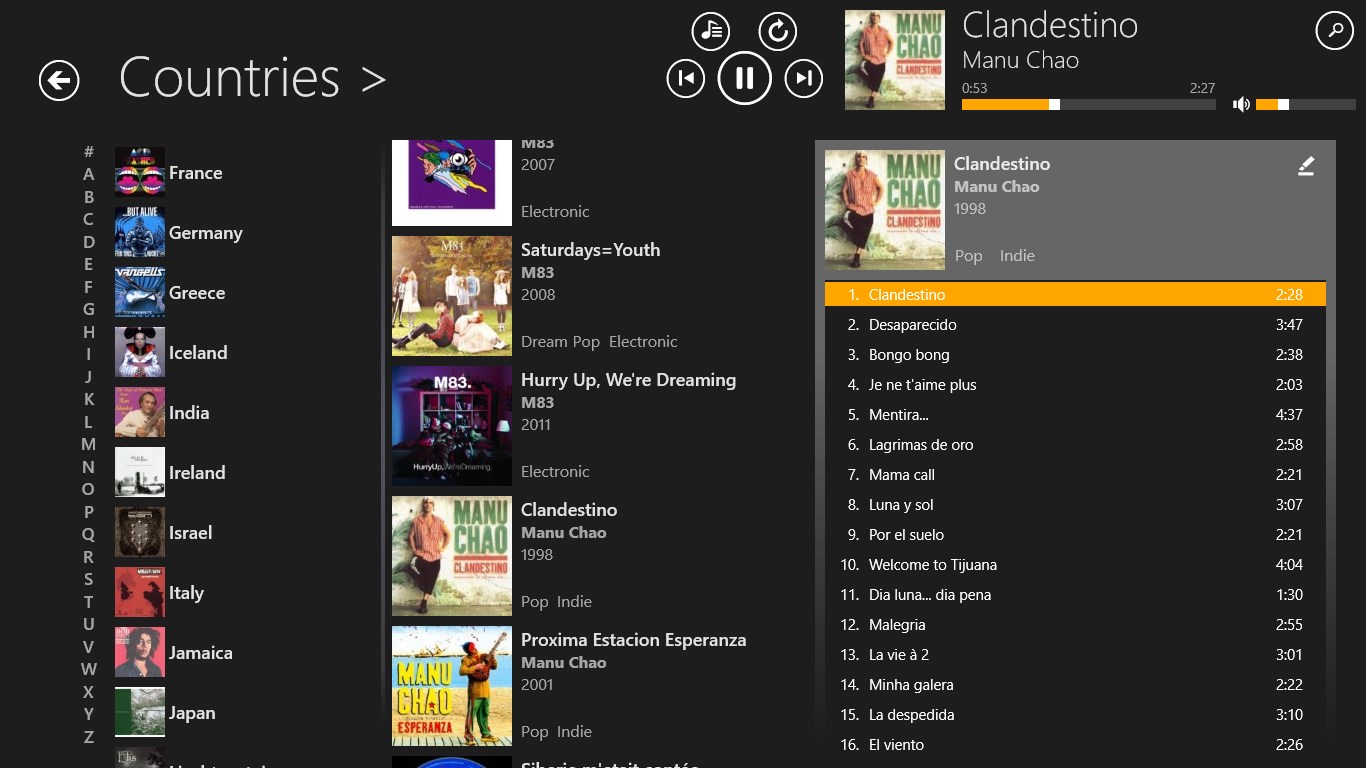 Fast and intuitive navigation through your local music collectionWorks very well even with very large music collectionsSleek user interface with smooth animations - freely scalable to any size!Different "auto pilot" modes will keep your music runningCrossfade support for smooth song transitions (PC only)Uses online databases to retrieve missing music metadataBuild and edit playlists using drag+drop (PC only)Manage and cleanup your music library using drag+drop (PC only)Play FLAC, ALAC (Apple lossless), Ogg Vorbis, Opus and APE audio files (free for one month, then requires \'Pro Version\', Ogg Vorbis, Opus and APE are not available on Windows 8.0)Fully functional even when snapped to the screen side (PC only)Stream music to a DLNA device with "PlayTo" (free for one month, then requires \'Pro Version\')Connect to your last.fm account for playback statistics (free for one month, then requires \'Pro Version\')Add music from other folders, e.g. from your SD-CardEnqueue files to be played next (limited in free version)Import playlists from m3u, m3u8 and pls files (PC only)