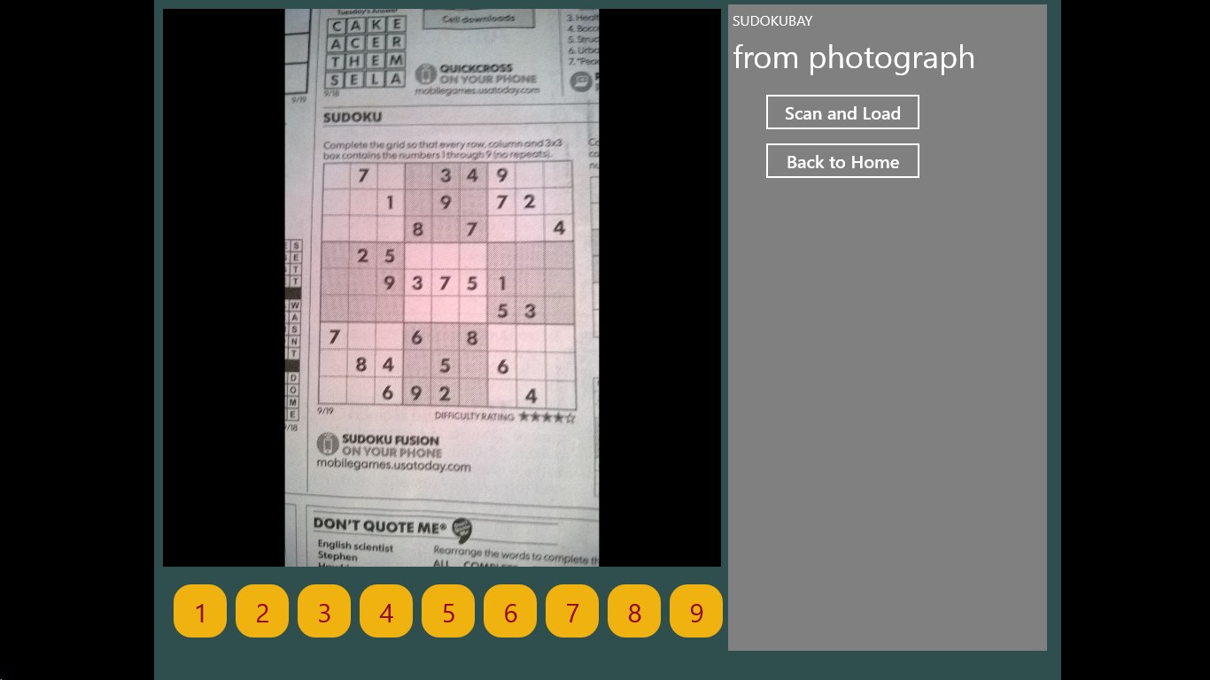 SudokuBay can now generate puzzles from photographs of Sudoku puzzles. A built-in OCR function scans the photograph and loads the numbers into the SudokuBay grid.