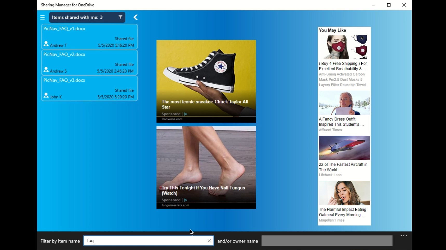 The Cloud Sharing Manager (formerly known as Sharing Manager for OneDrive) gives you control of what you’ve shared and what has been shared with you via OneDrive. It also includes the Clipboard Tool.