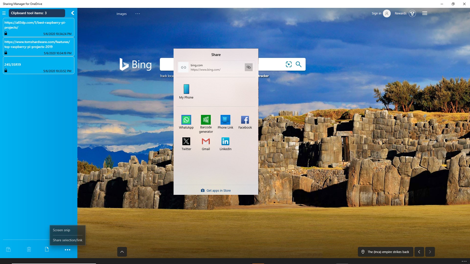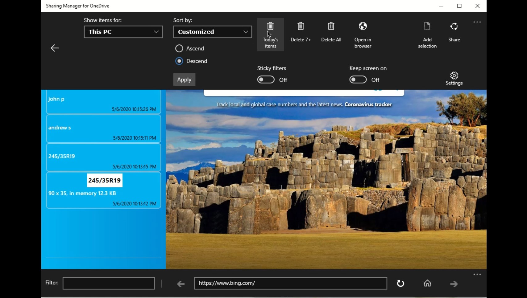 One Consolidated List: Easily control what you\’ve shared via OneDrive with a single, user-friendly list.Clipboard Tool: Search for items added to the clipboard or previously saved in the app across all your devices.Effortless Navigation: No need to navigate through OneDrive folders to find what you\’ve shared.Visual Clipboard List: Keep a visual list of anything that interests you, storing links, selected text, images, or whole pages as thumbnails.