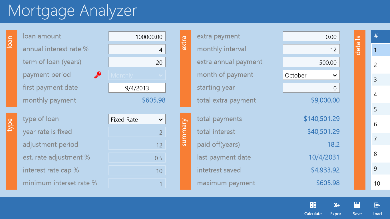Mortgage Analyzer is a simple yet powerful tool that lets you see how different loan options (Fixed Rate or ARM) or Payment Options affect your mortgage. This includes: