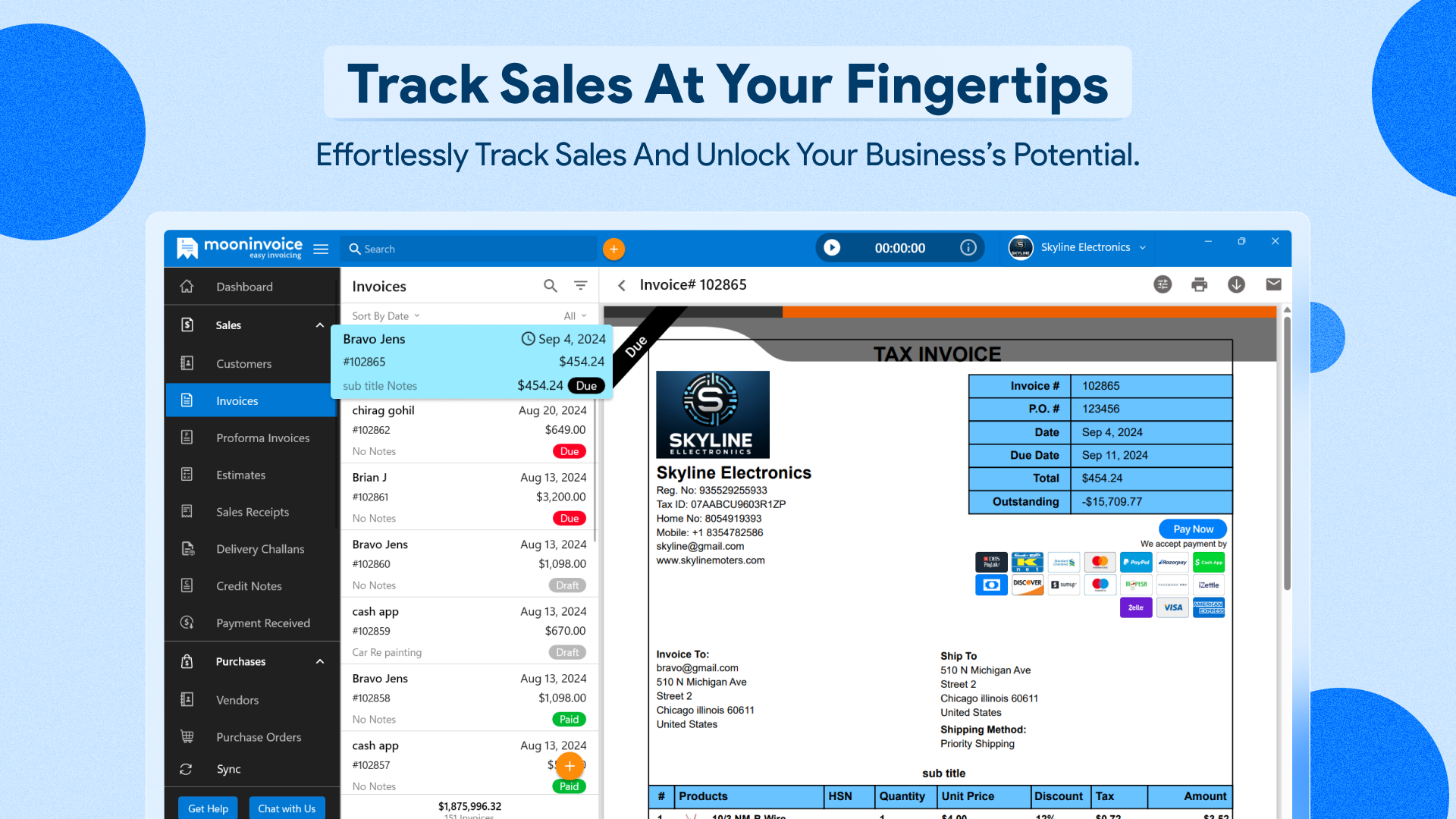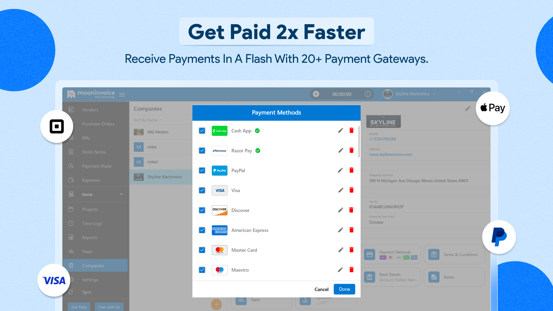 ✔ Accept payments via debit card, credit card, UPI, and digital wallets with Moon Invoice.