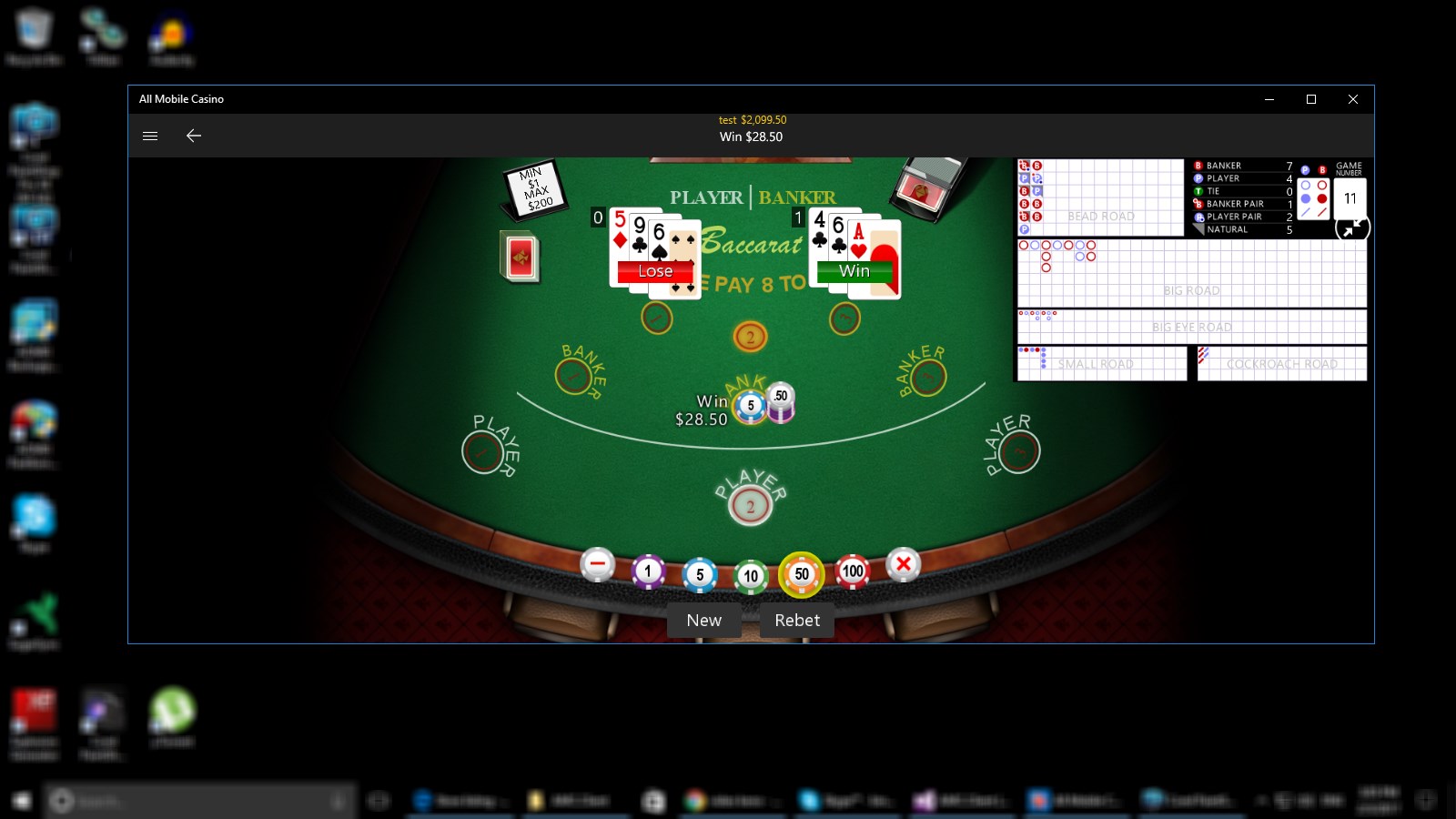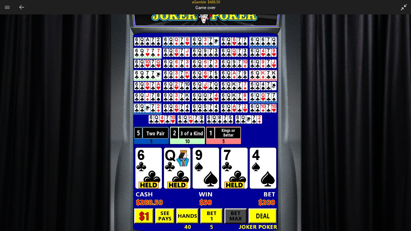Full history display in baccarat: bead road, big road, big eye road, etc...Play up to three hands and with up to three splits per hand in blackjack.Play up to 40 hands in multi-hand video poker.Doubling game option in single hand video poker.One click quick play by pinning the game to Start.Stores your last 5,000 rounds, allowing you to review your strategy. Player statistics.Extensive offline help for each game.Play offline, no internet connection required.Nothing to unlock.Nothing to purchase.No virtual drinks!More games coming soon...