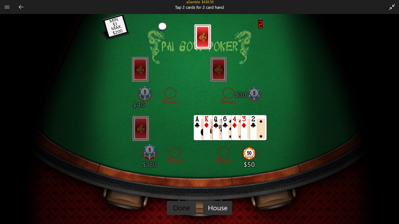 - Fixed Pai Gow Poker bug (introduced in v2.1.0) that prevented player from selecting card.