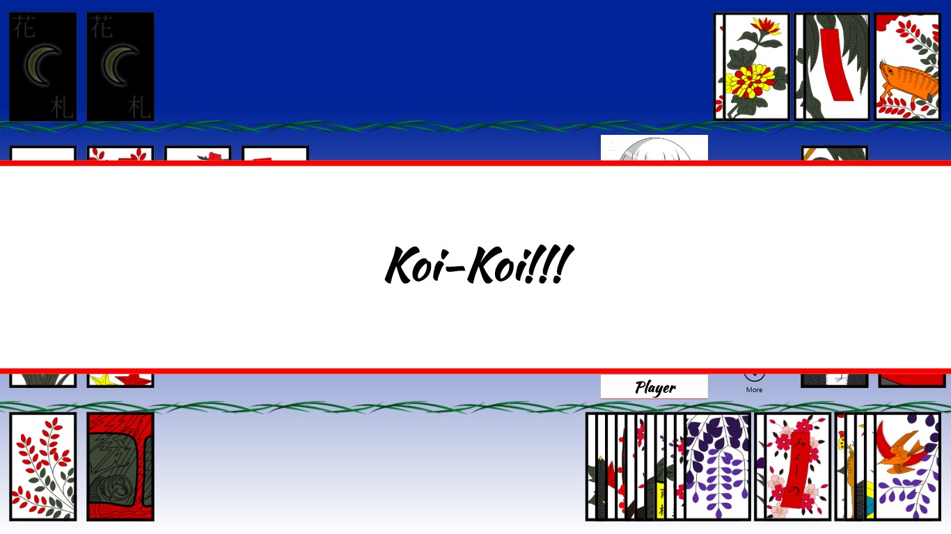 Enjoy the traditional Japanese Hanafuda card game, Koi-Koi! Face your opponents in a competition to see who can get the most Yaku! The fate of the match may come down to one decision… do you dare Koi-Koi?