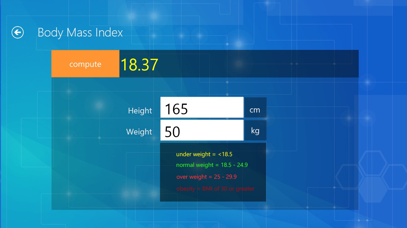 >BMI calculator has got color indicators.