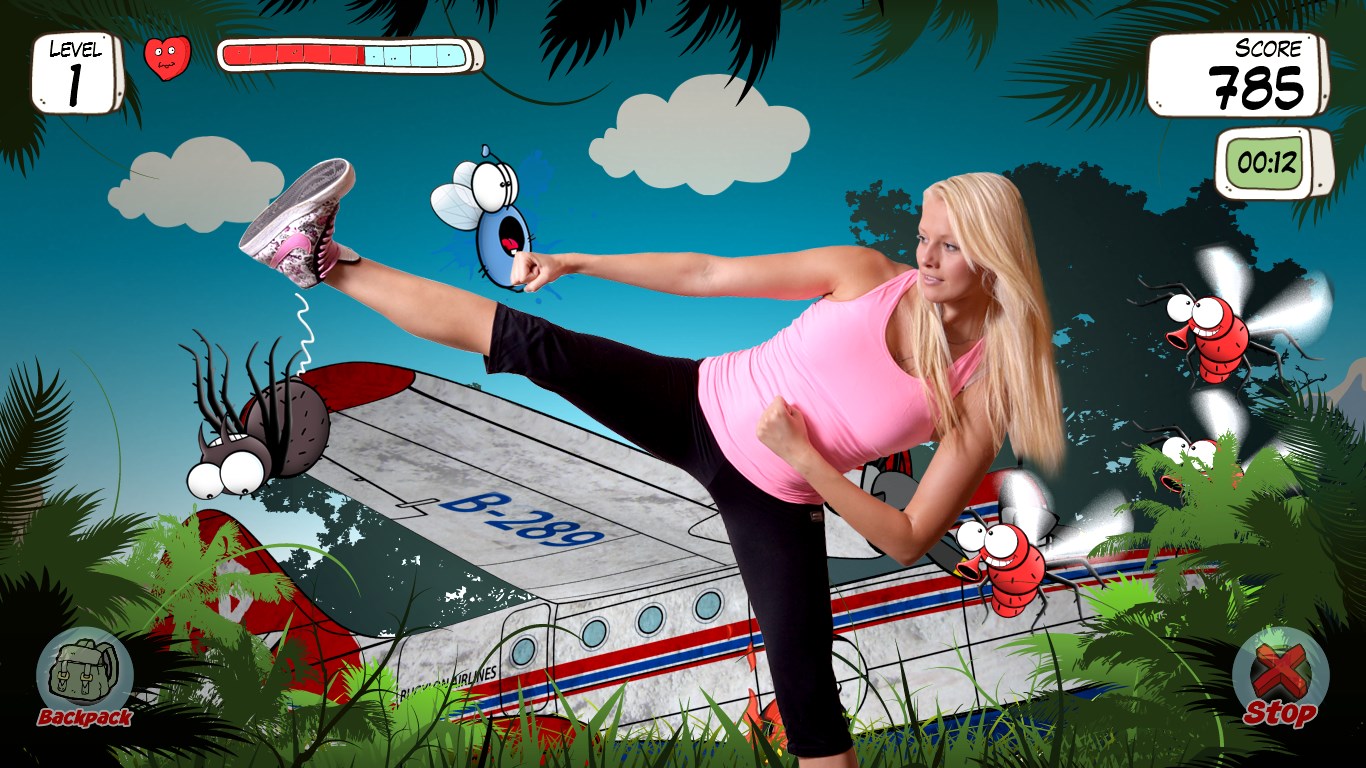 Augmented Reality ExperienceDetects Motion via built-in Camera or attached WebcamCalculates Burned Calories3 free levels of pure fun and excitementShare the best photos