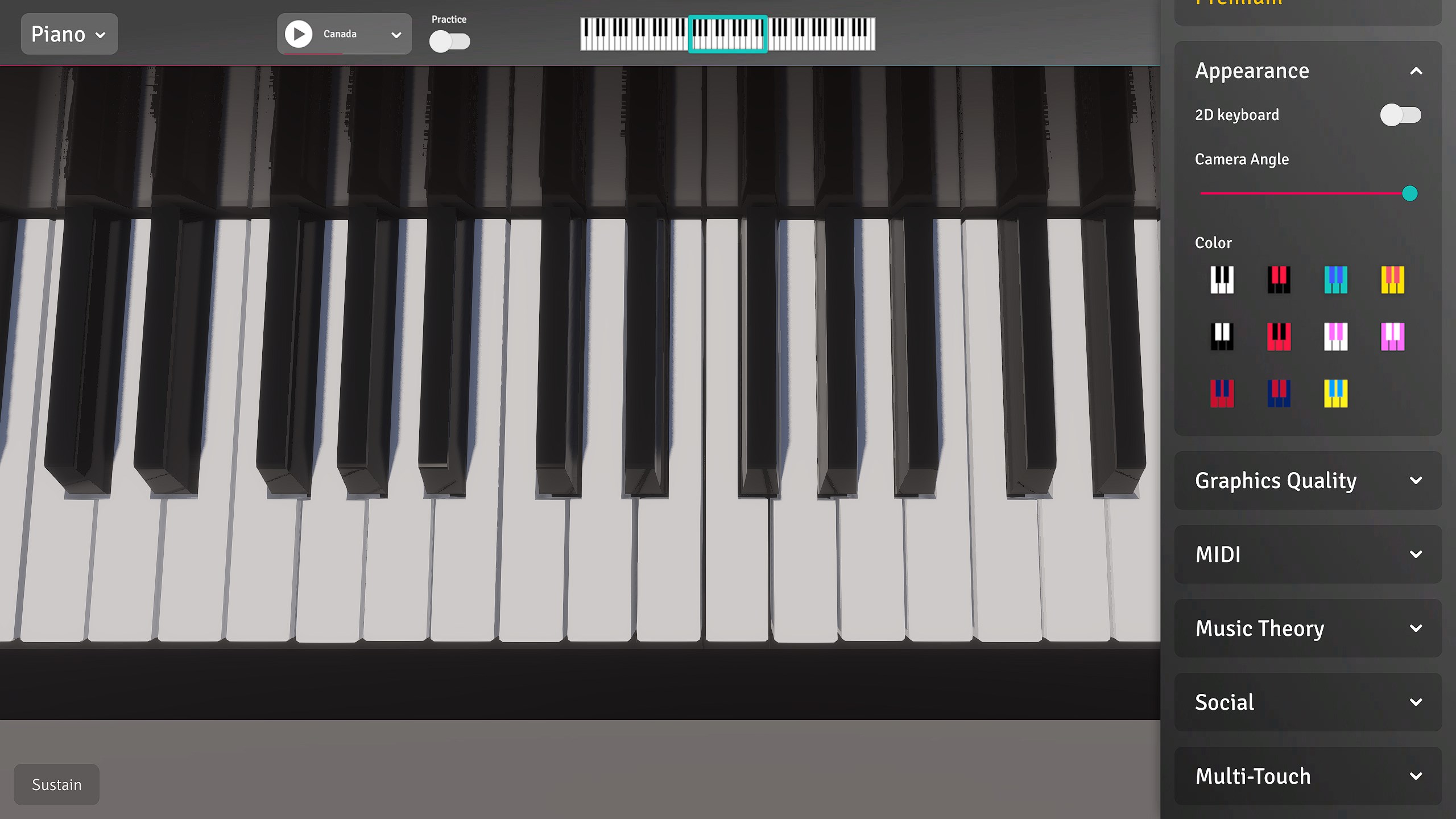 Scrolling and scaling make Piano 3D even more convenient.