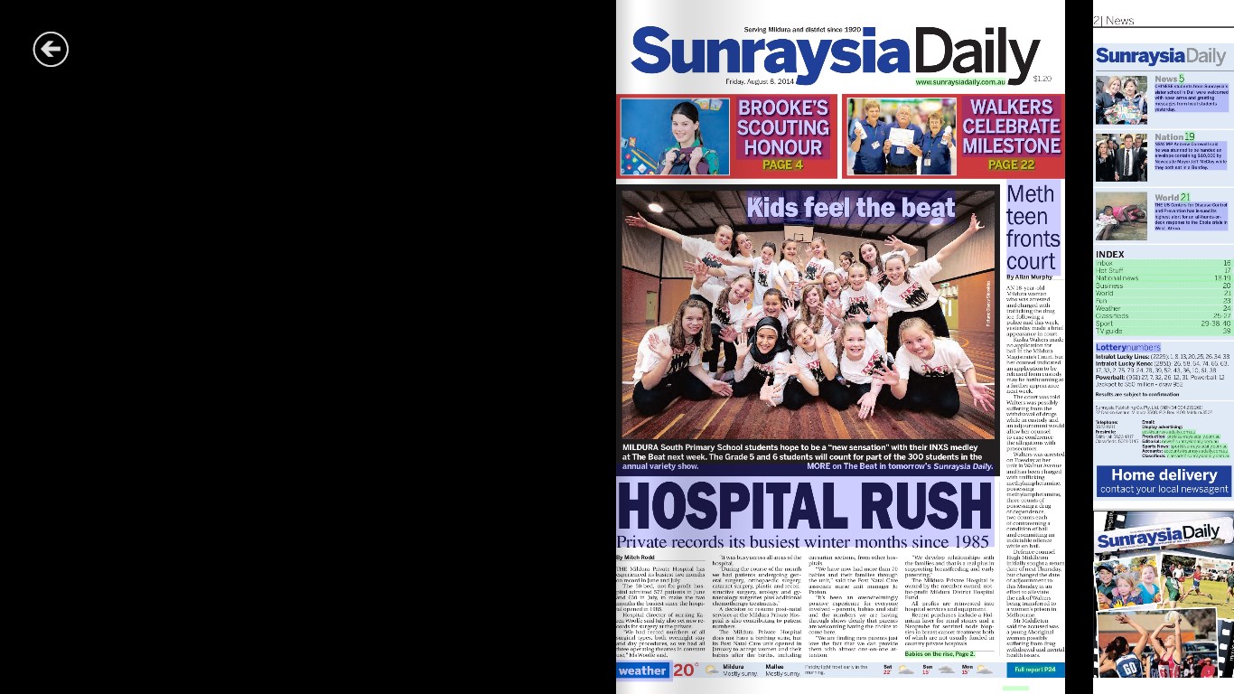The Sunraysia Daily App gives you access to the latest digital edition of Mildura’s local newspaper Sunraysia Daily. With this app all sections are presented as full-content digital replicas, in their original layout. You can subscribe to the Sunraysia Daily