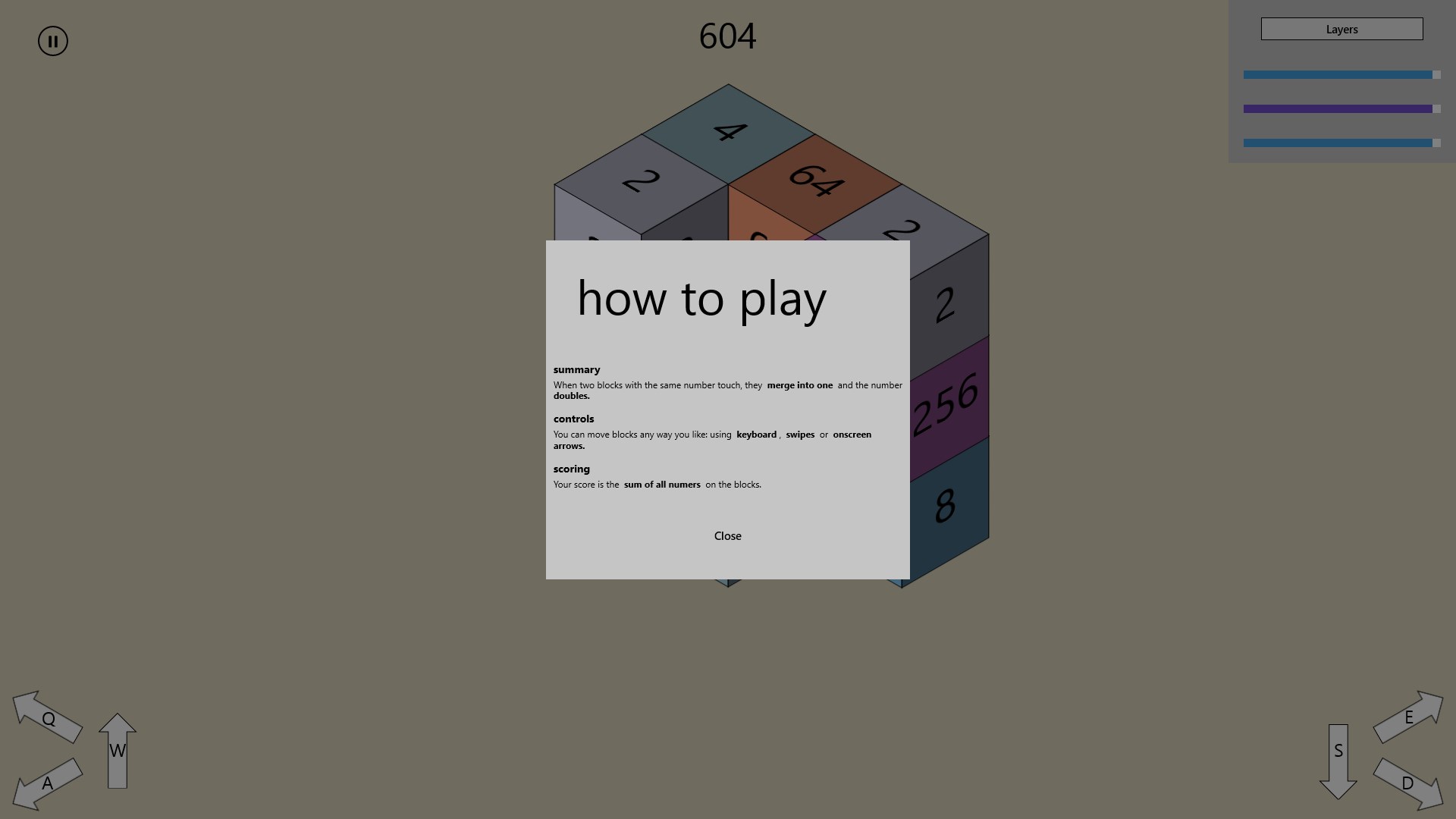 Awesome and addictive puzzle based on 2048 game. This game is similar but the game field is now a cube 3x3x3.