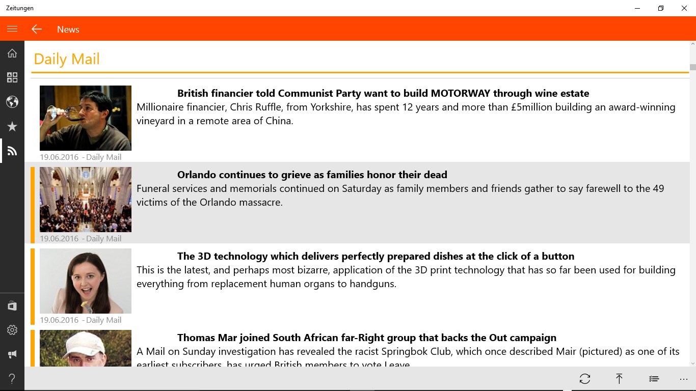 Available newspapers can be categorized, listed and viewed directly in the app or external browser. You can share headlines or articles with your friends.