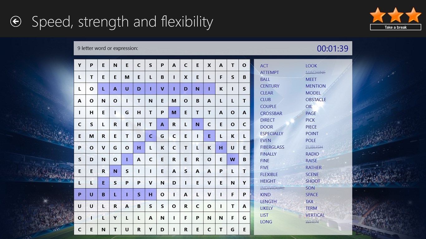 Try to be fast enough to earn all the stars and become a word search master!