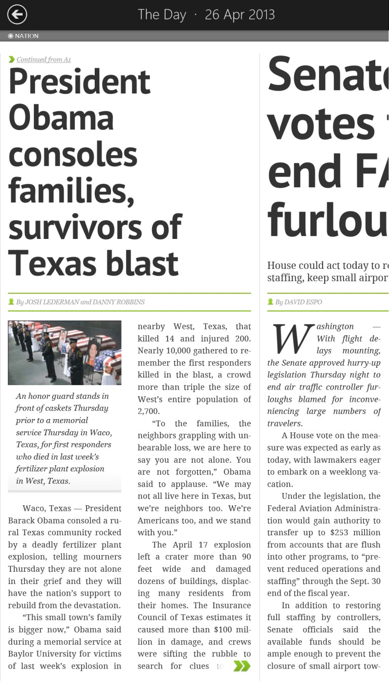 With The Day E-Paper, you can read The Day online in its true printed format from anywhere in the world. The E-Paper is enhanced with the latest digital tools, including social networking, blogging and much more. You can flip pages and share articles with friends. Download this app for free and enjoy a free trial of The Day e-Edition!