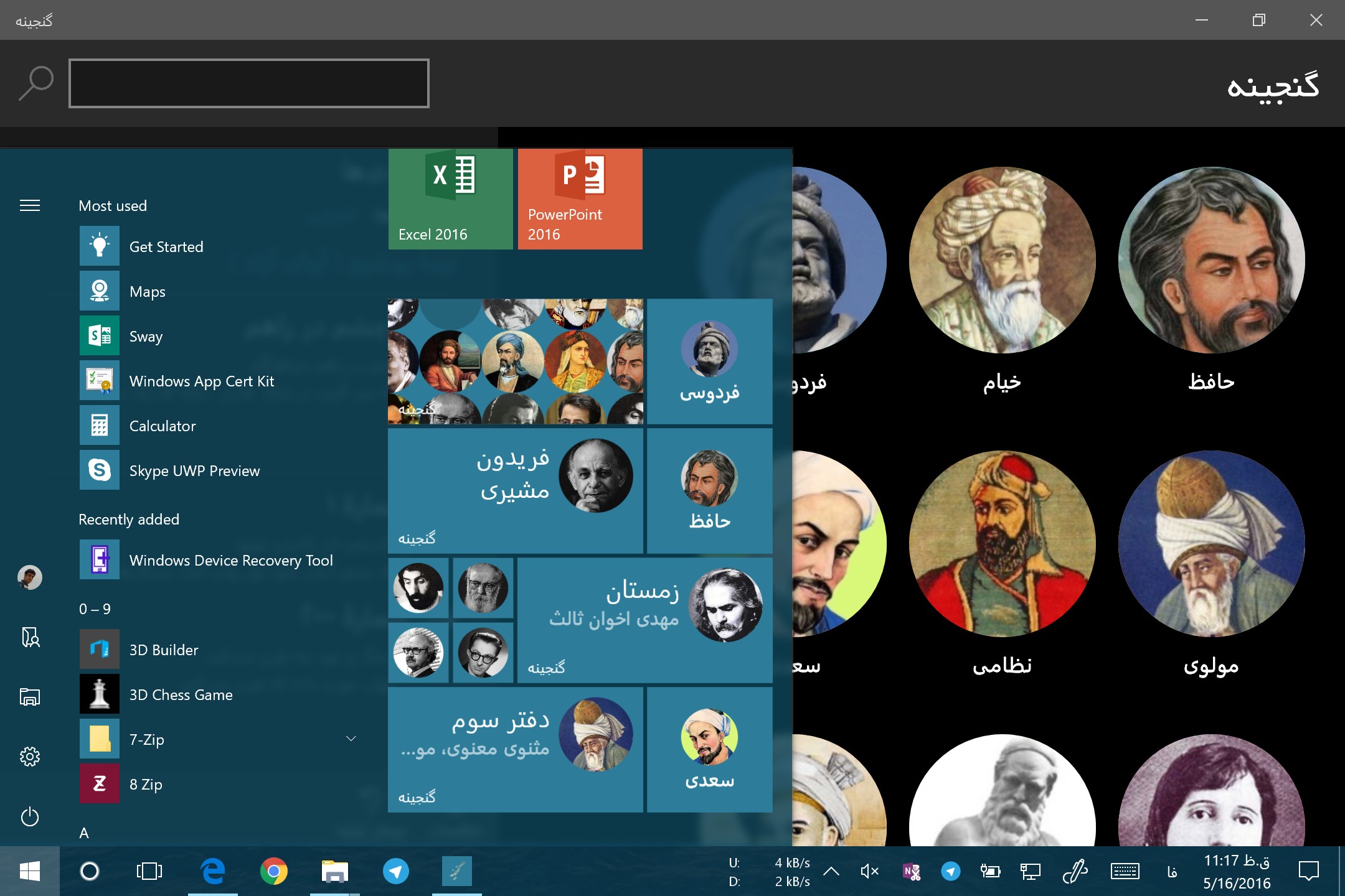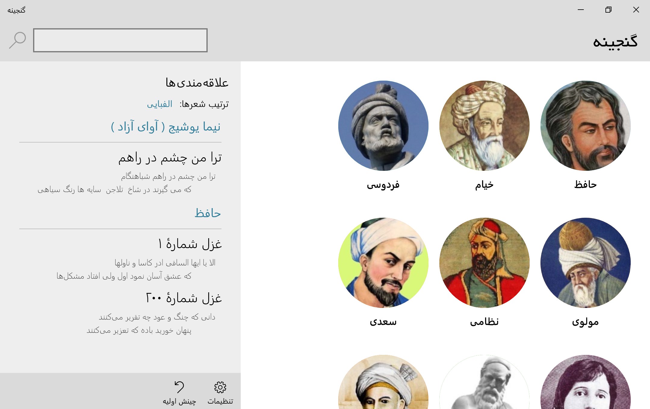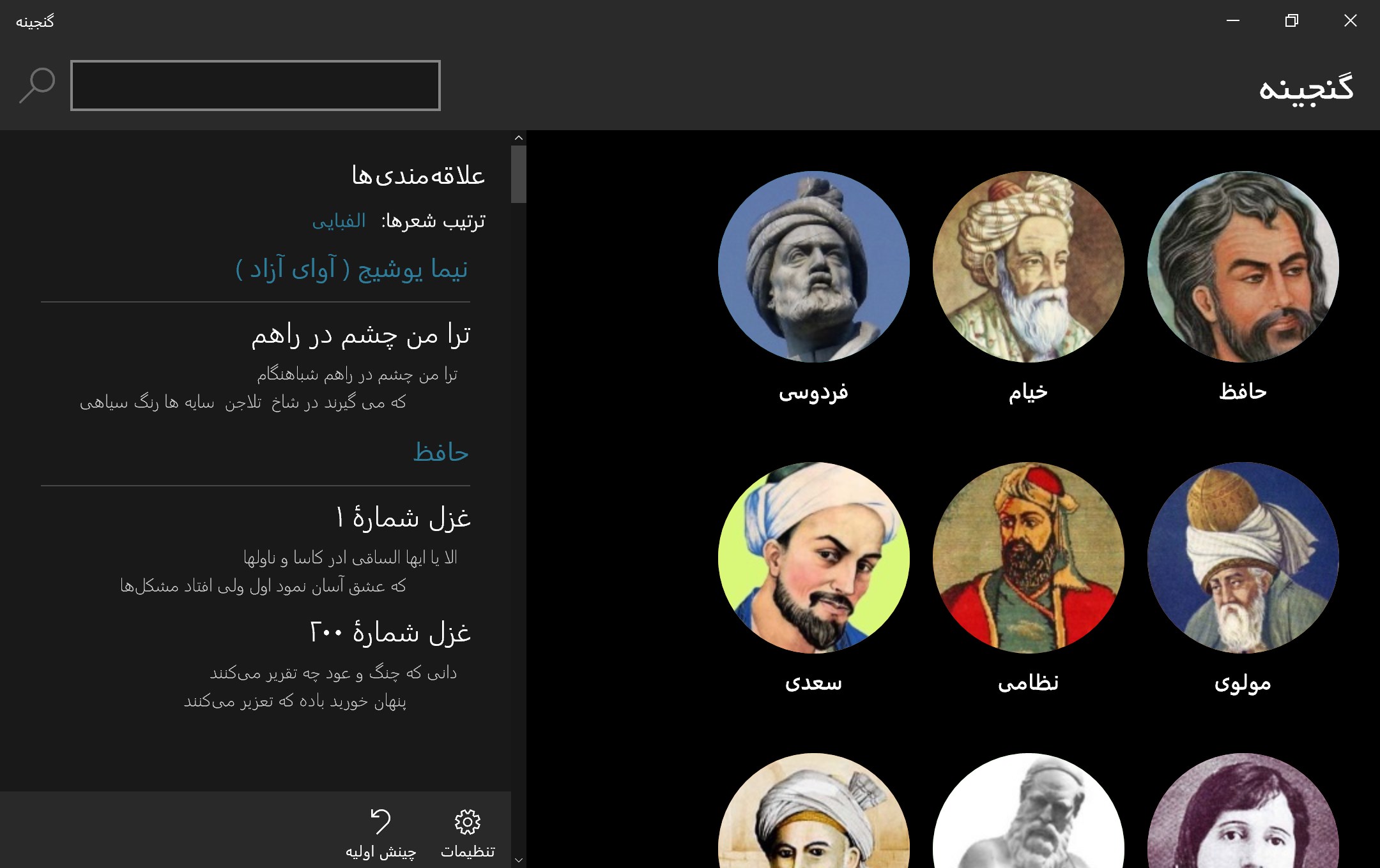 ✓ قابلیت پین کردن شاعران به Start