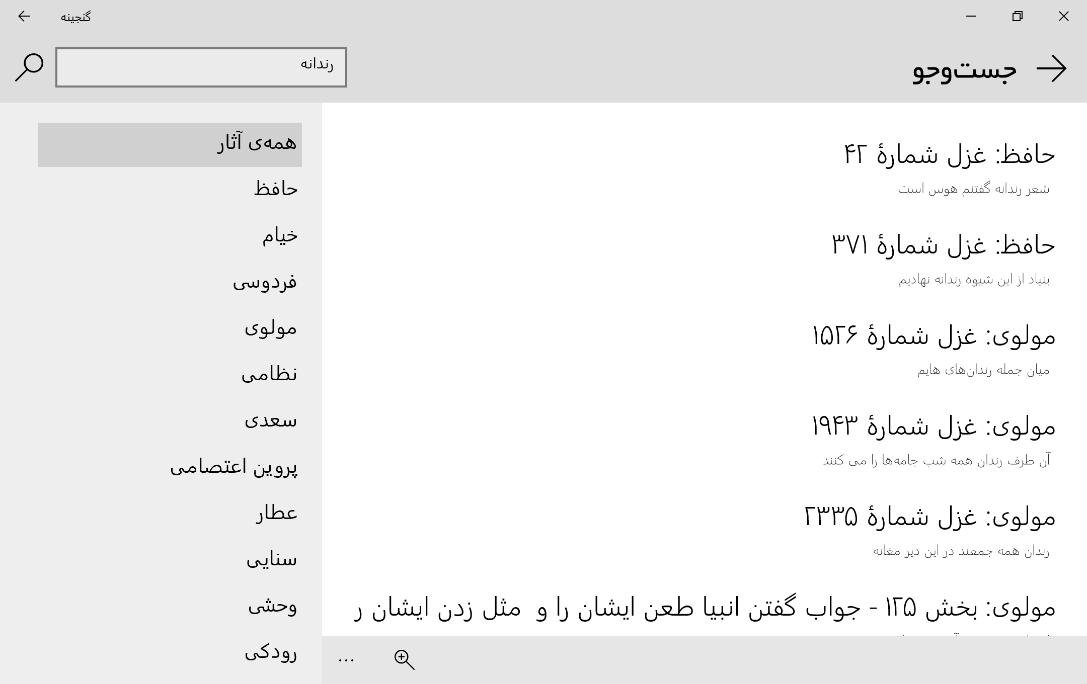 ✓ شامل آثار بسیاری از شاعران کهن و معاصر پارسی زبان