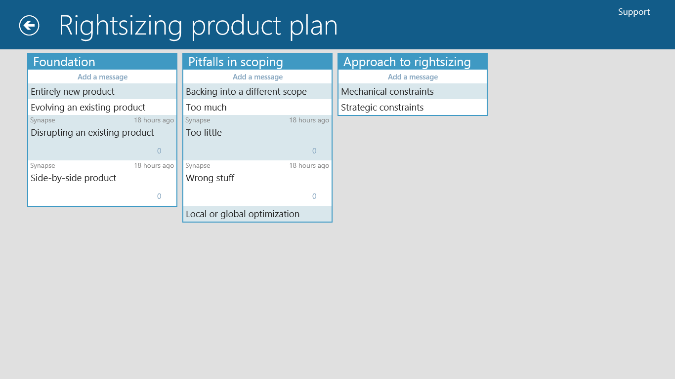 Synapse is developed for busy people. It's purposed to get things done, mitigate the inevitable mess during large conversations, and focus activity in the right directions by explicitly outlining the discussion structure as it evolves.