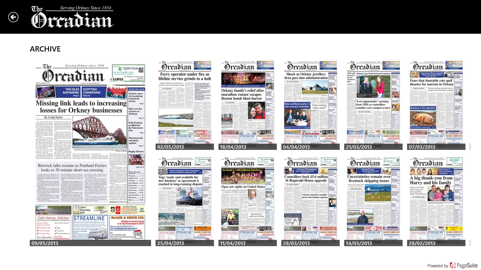 Download and offline usage – Save whole editions and individual pages to view laterArchive - Browse past editions of The Orcadian in full