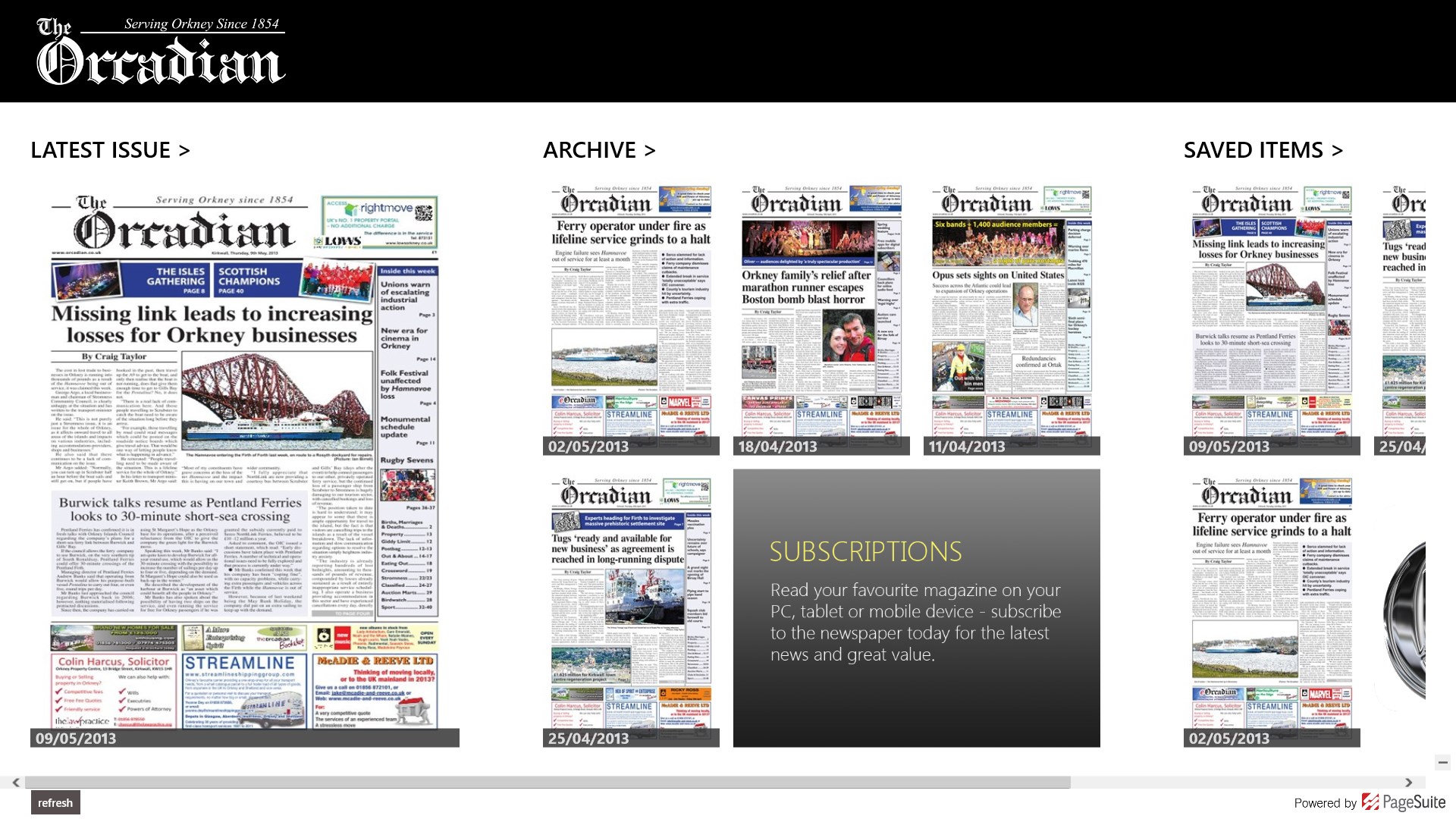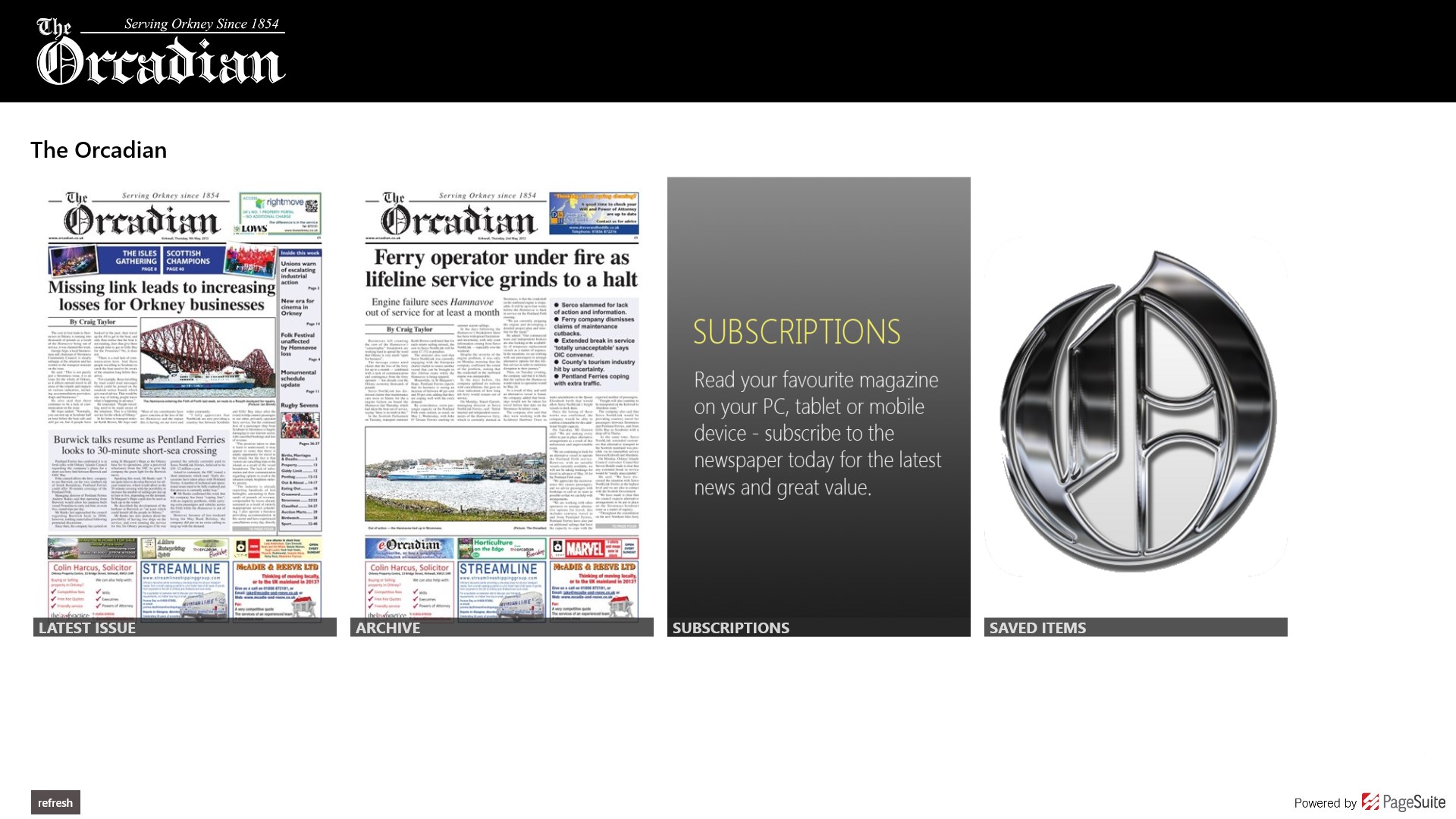 Subscribe to The Orcadian now and get your favourite newspaper delivered to your Windows 8 device every Thursday morning.