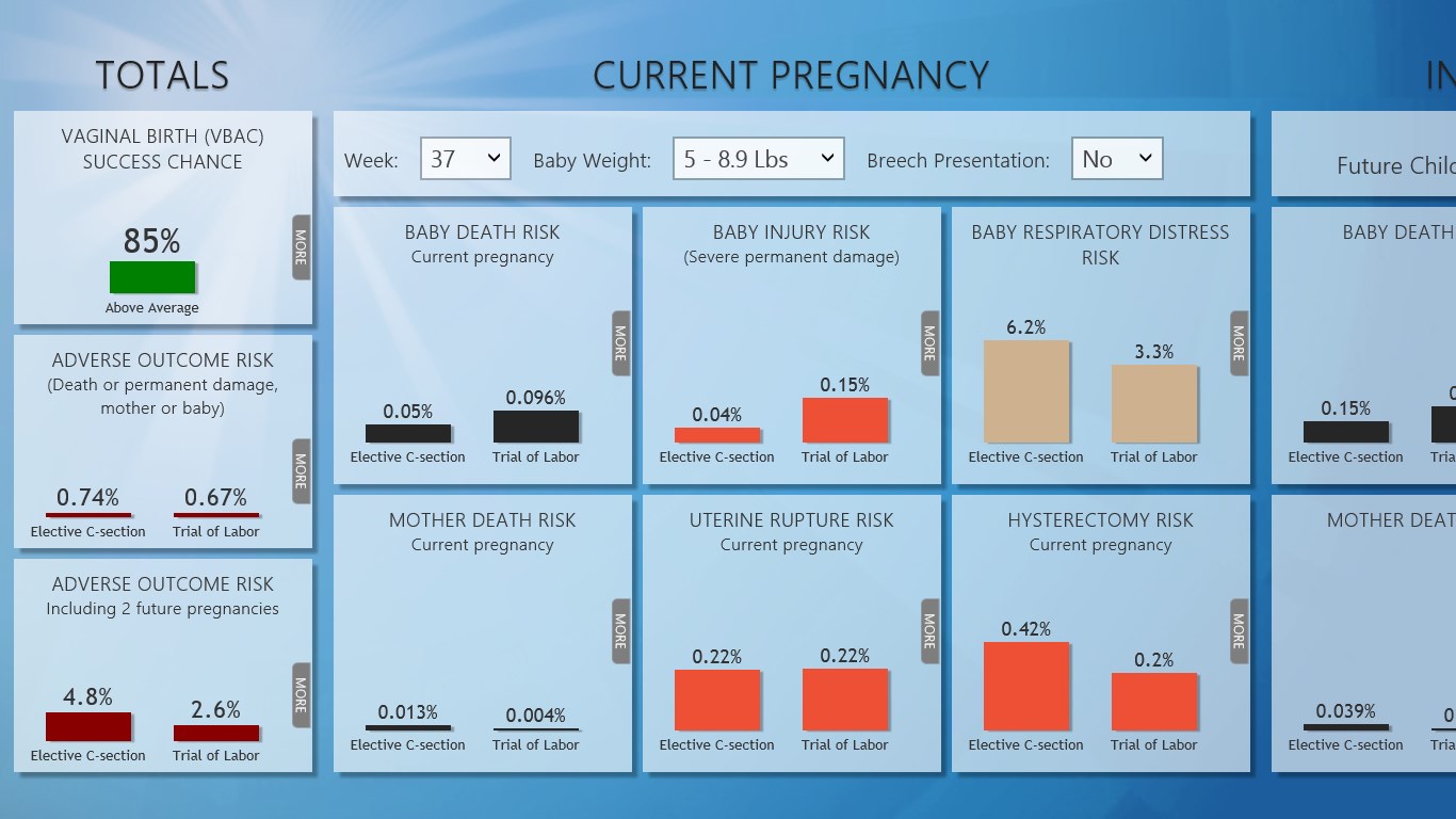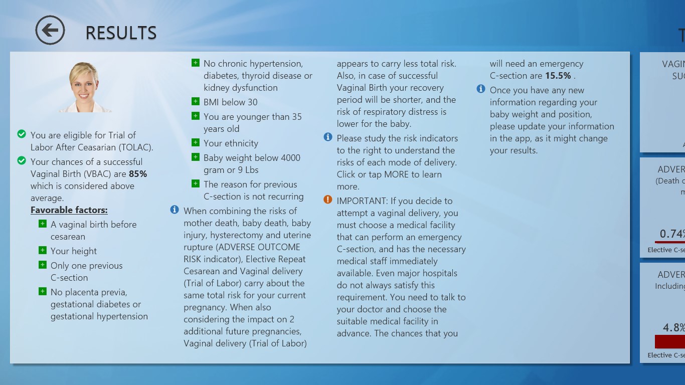This app utilizes statistical data from more than a hundred of scientific studies based on millions of deliveries, and it can help you with this potentially life changing decision.