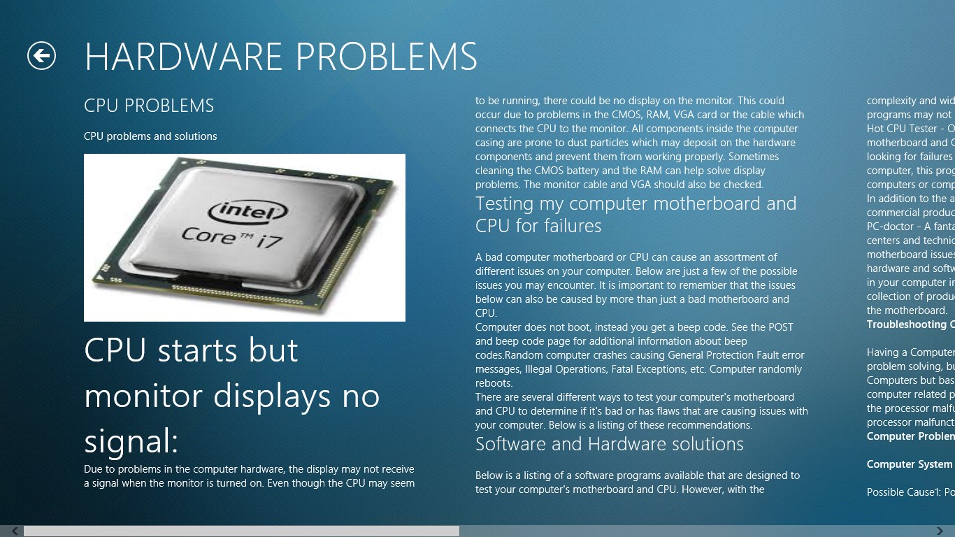 This app will act as an help book for computers which will explain you about various hardware and software problems that your computer may get affected with .